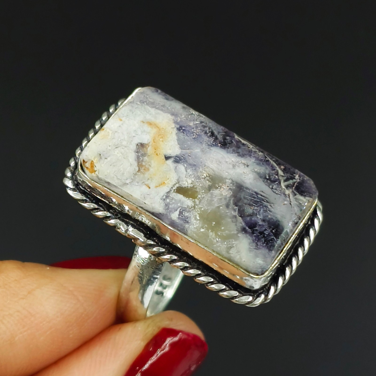 как выглядит Natural Sodalite Gemstone Handmade 925 Sterling Silver Ring Size-7.5 US фото