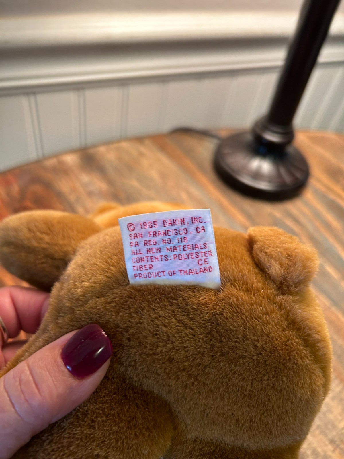 как выглядит Vintage Dakin Teddy Bear Plush 1985 Chocolate Brown Red Heart Bow 9" Tongue фото
