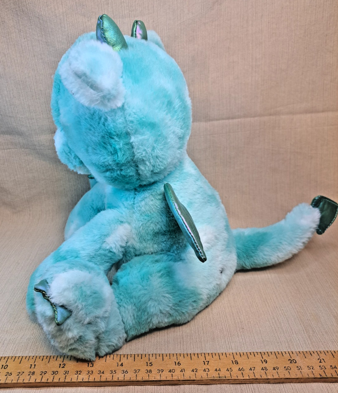 как выглядит FAO Schwarz Teal Plush Dragon Stuffed Animal 14 Soft Sparkle Wings Glow Works фото