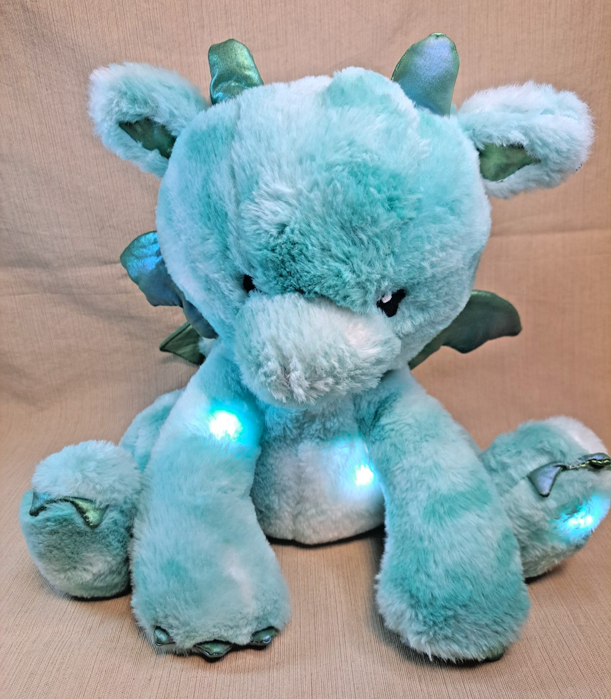 FAO Schwarz Teal Plush Dragon Stuffed Animal 14 Soft Sparkle Wings Glow Works