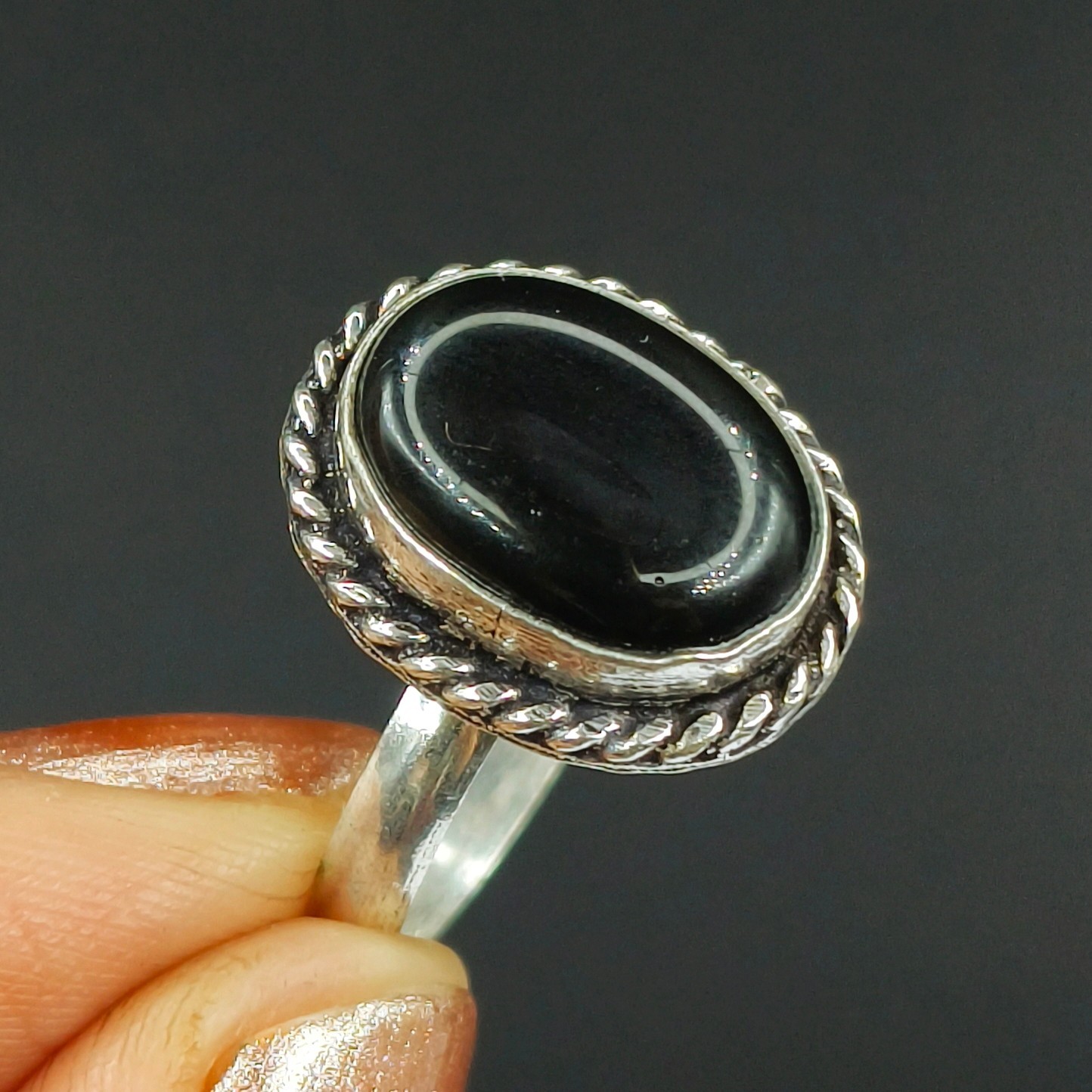 как выглядит Natural Black Onyx Gemstone Handmade 925 Sterling Silver Ring Size-8 US фото
