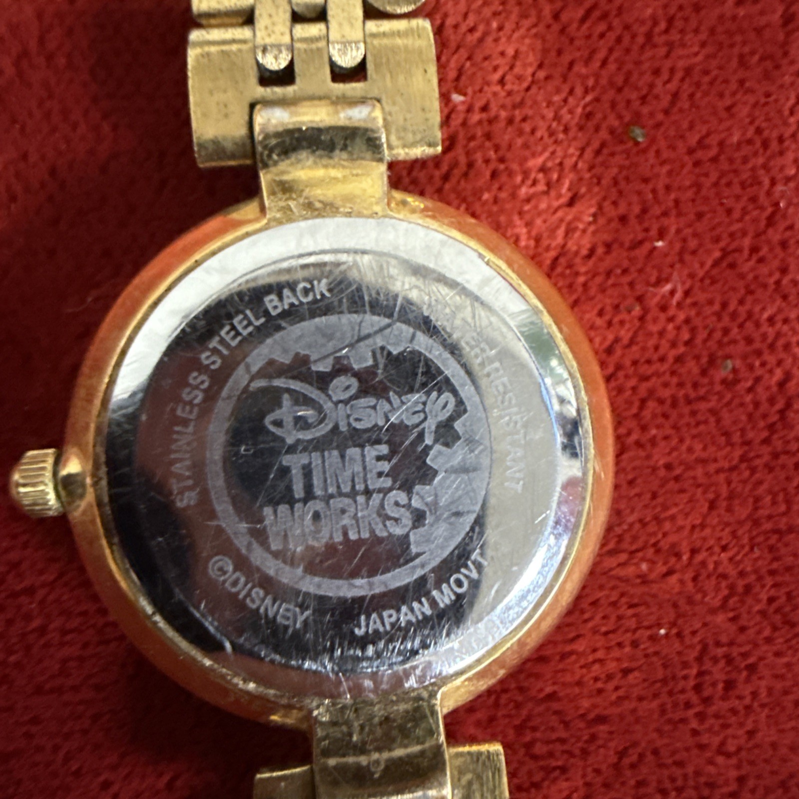 Rare Disney TIME WORKS VINTAGE MICKEY MOUSE WRISTWATCH GOLD 3 Bands W/Box