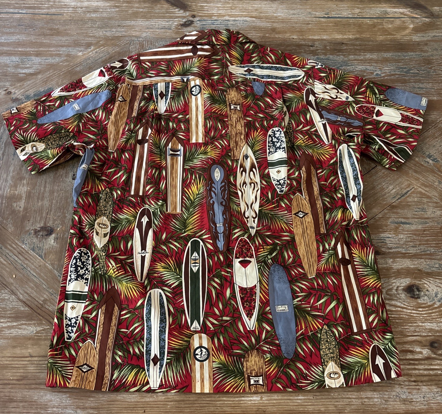 VTG RJC Hawaiian Shirt L Surfboards Aloha Beach Print Made in Hawaii Cotton NWOT