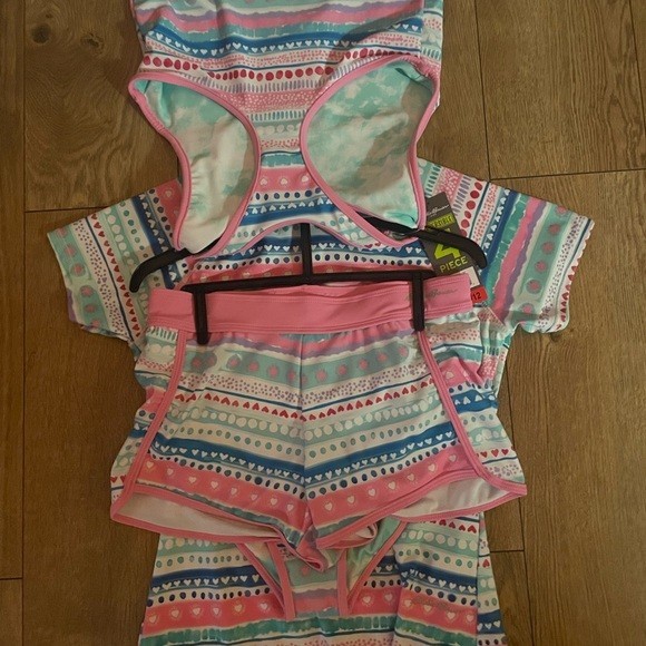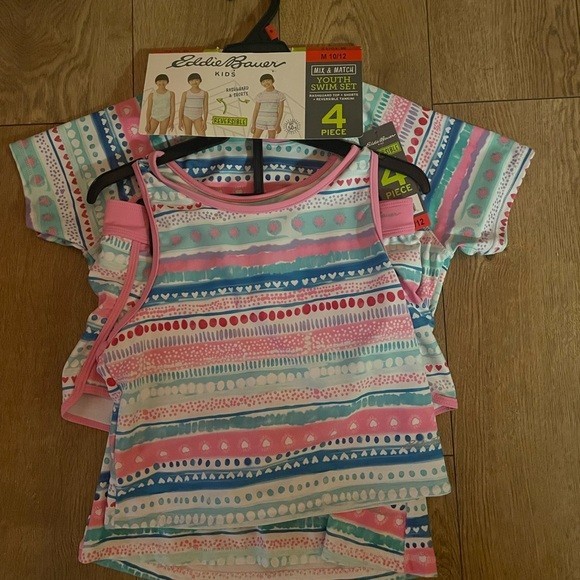 Eddie Bauer Kids Girl's 4-Piece Mix Match Reversible Swim Set, Size M 10/12