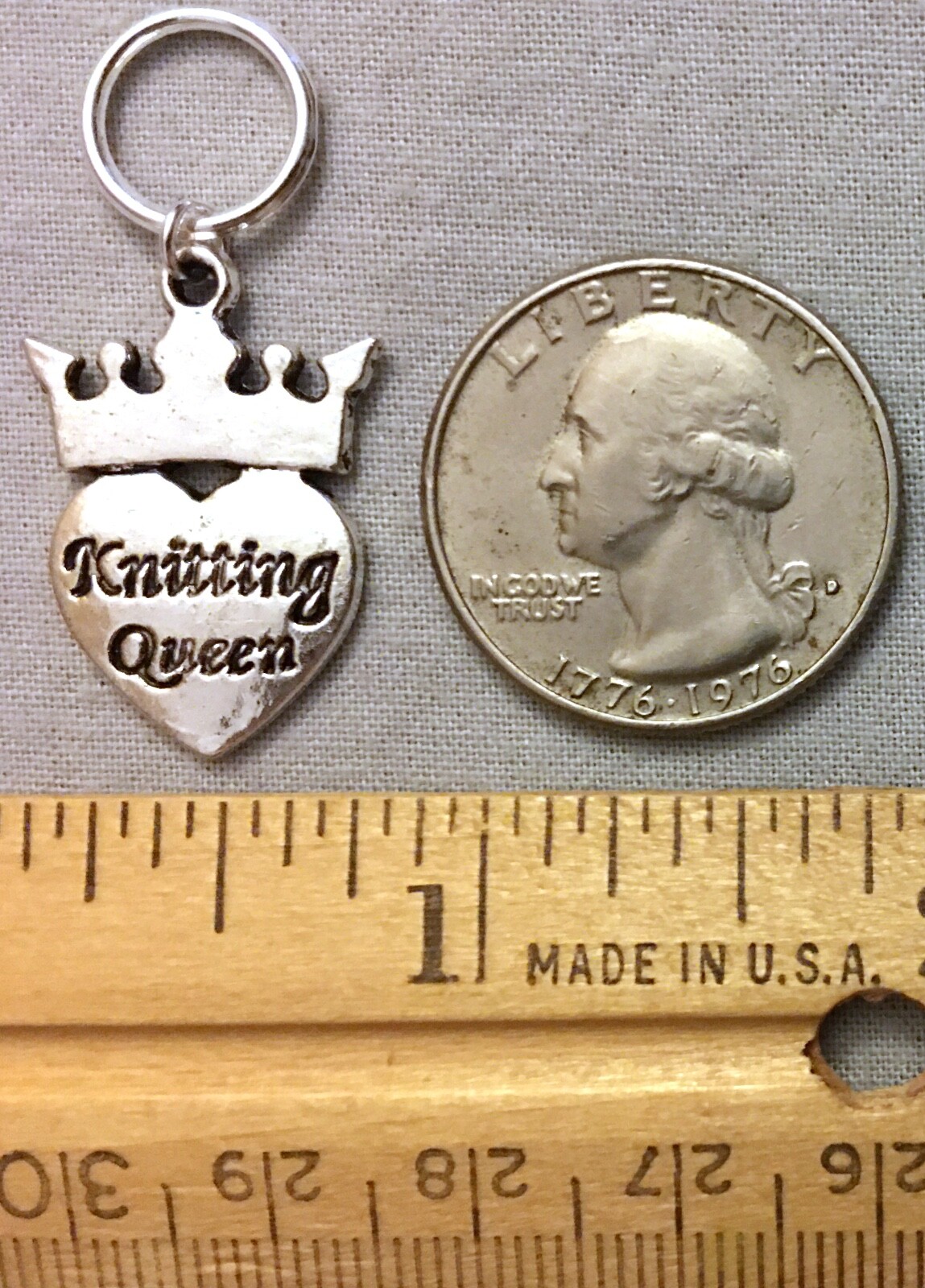 как выглядит KNITTING QUEEN STITCH MARKERS, Set of 2 - Pewter Charm on Silver Plated Ring фото