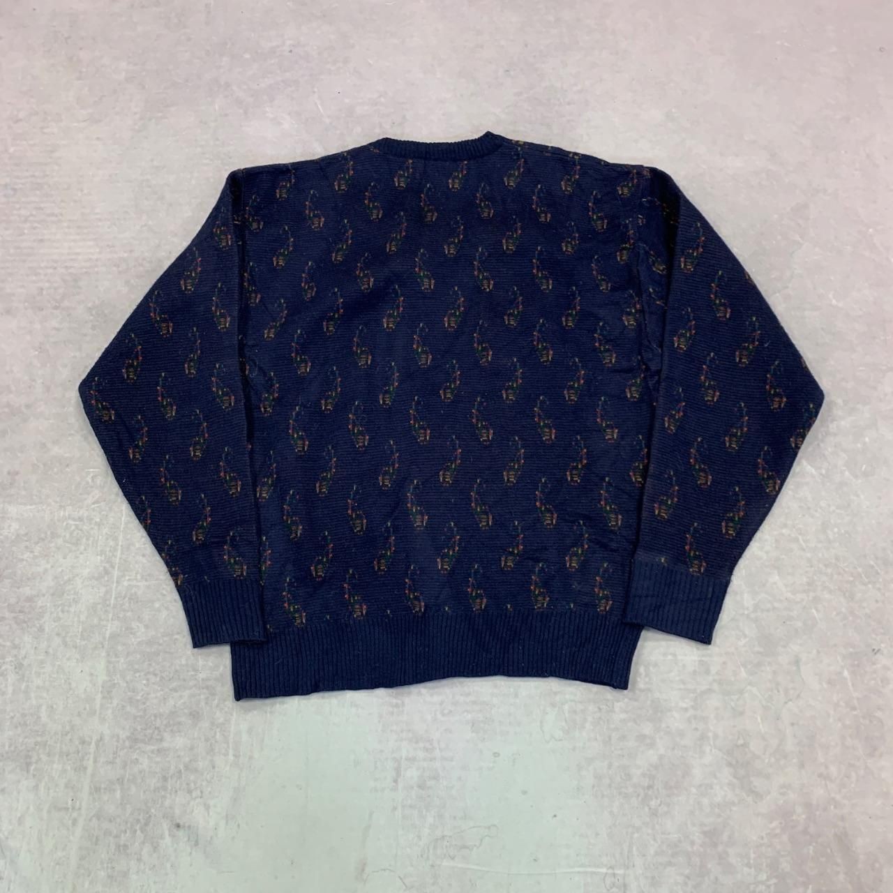 как выглядит Vintage Knitted Jumper abstract patterned v-neck grandad knit sweater Mens L фото