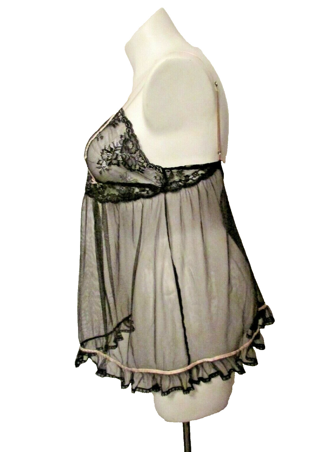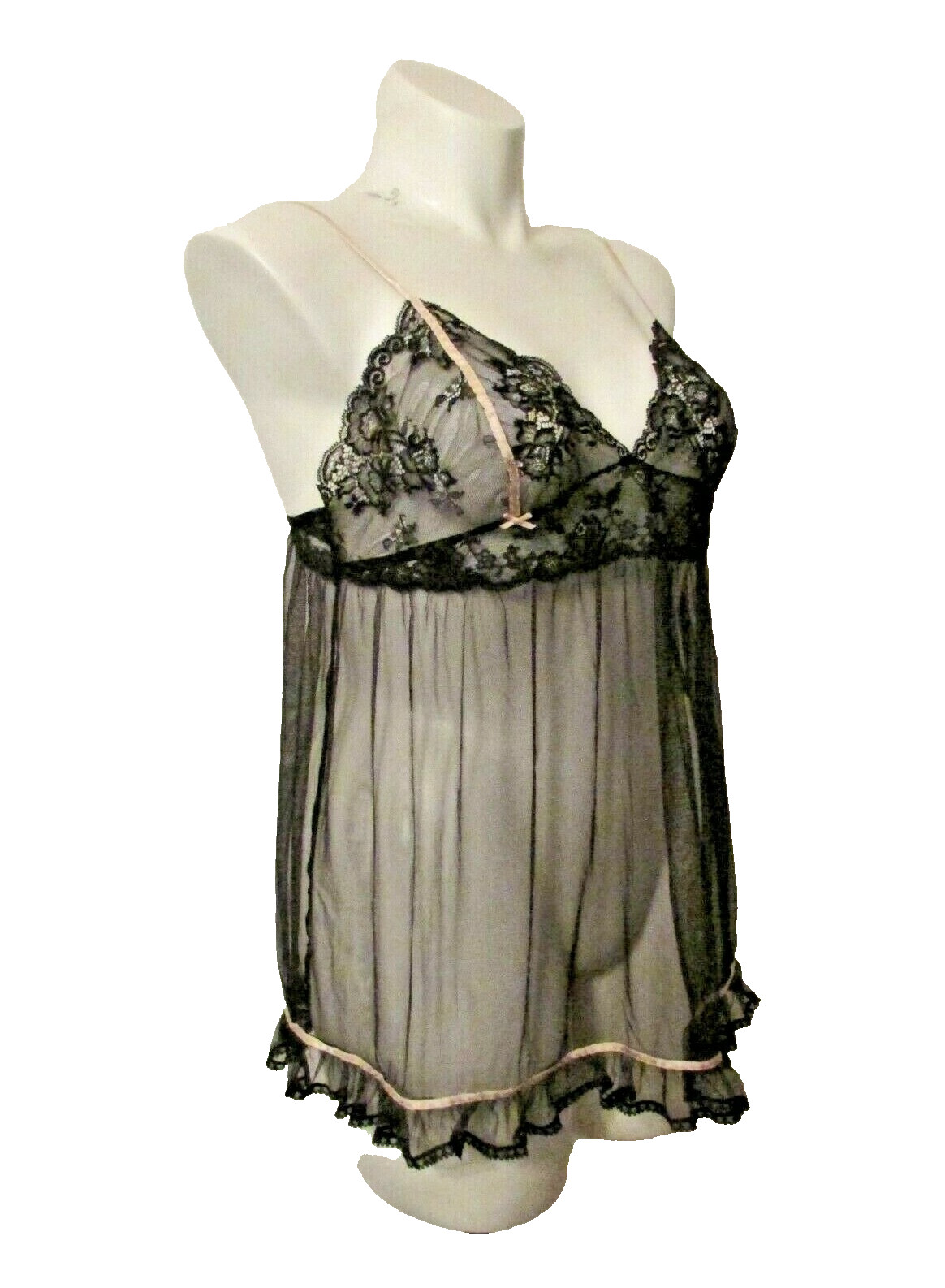 как выглядит Victorias Secret Sheer Mesh Lace Trim Chemise Babydoll Nightie Slip Negligee L фото