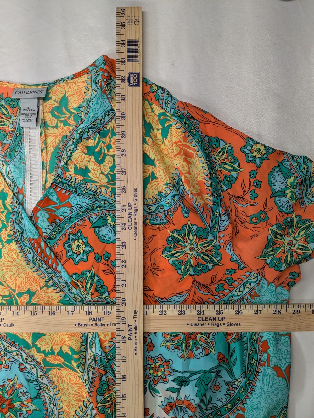 Catherines Chiffon Kimono Boho Womens Sz 2X Open Front Lightweight Cover Up A039