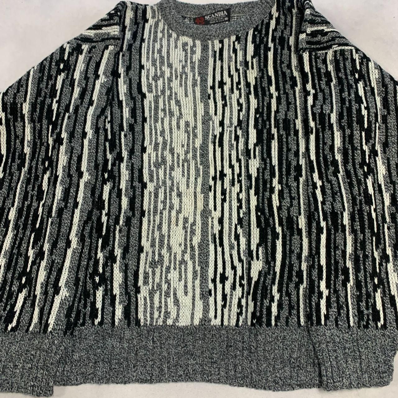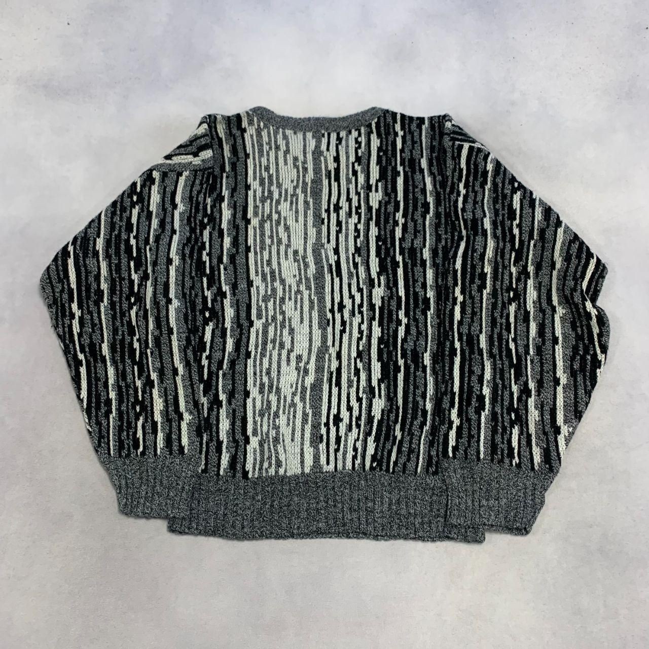 как выглядит Vintage Abstract Knitted Jumper Patterned Grandad Knit Sweater Men