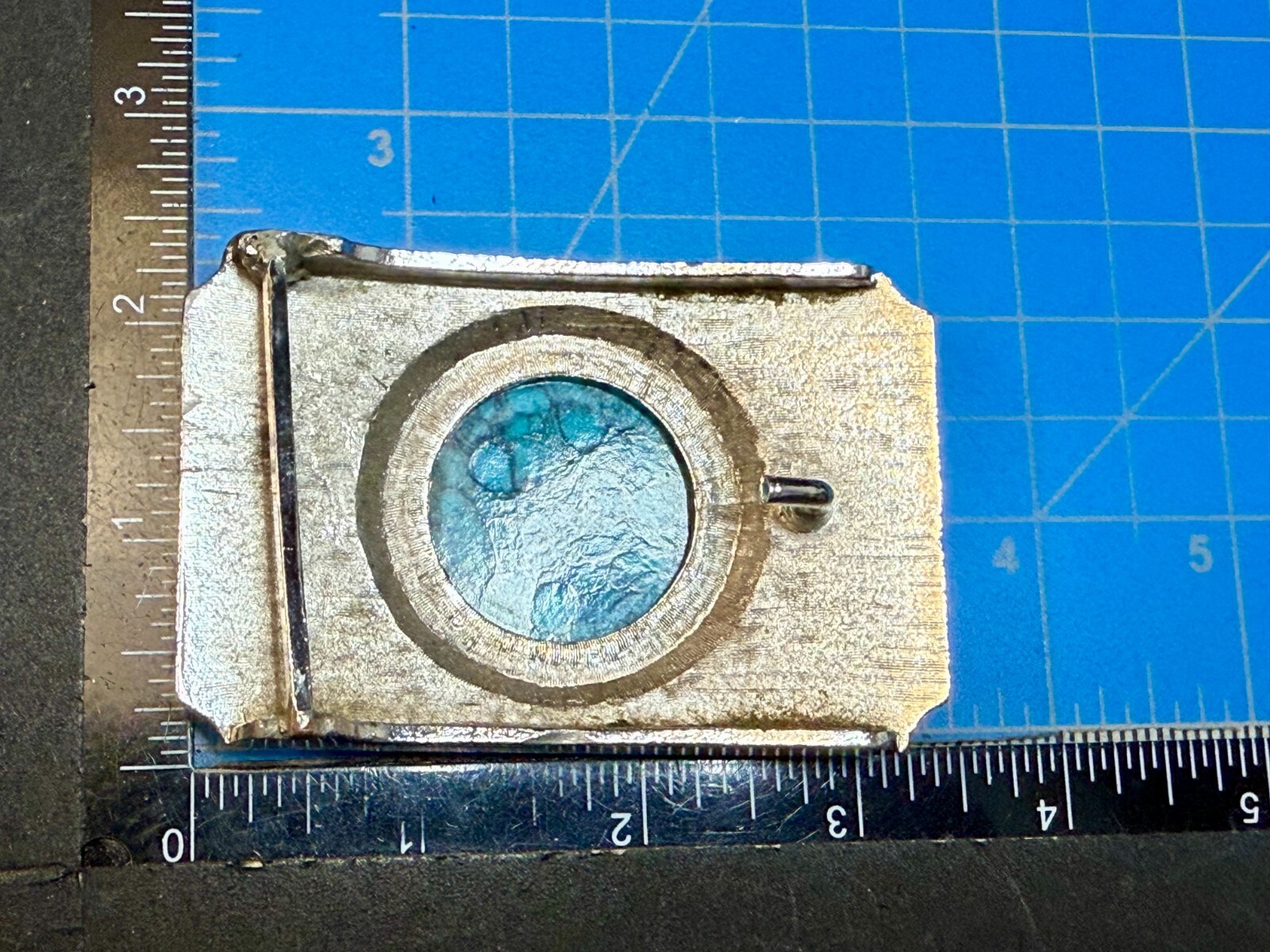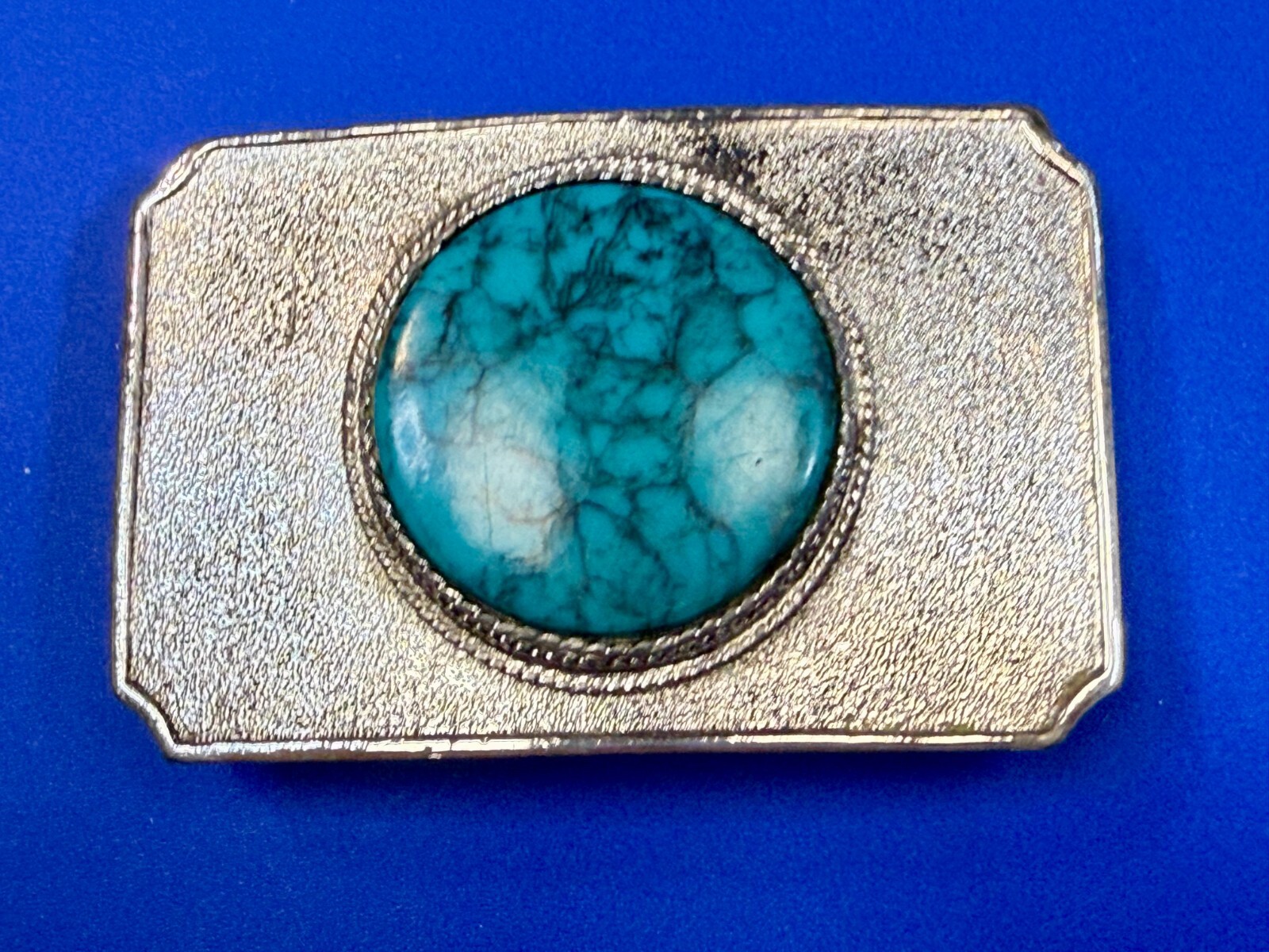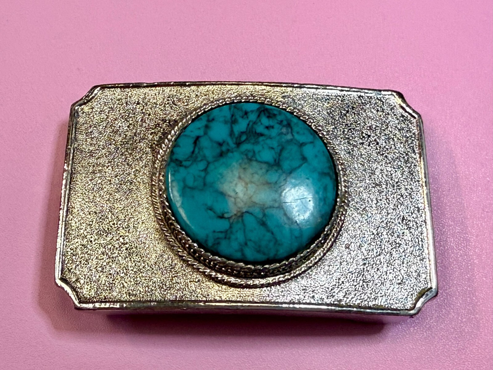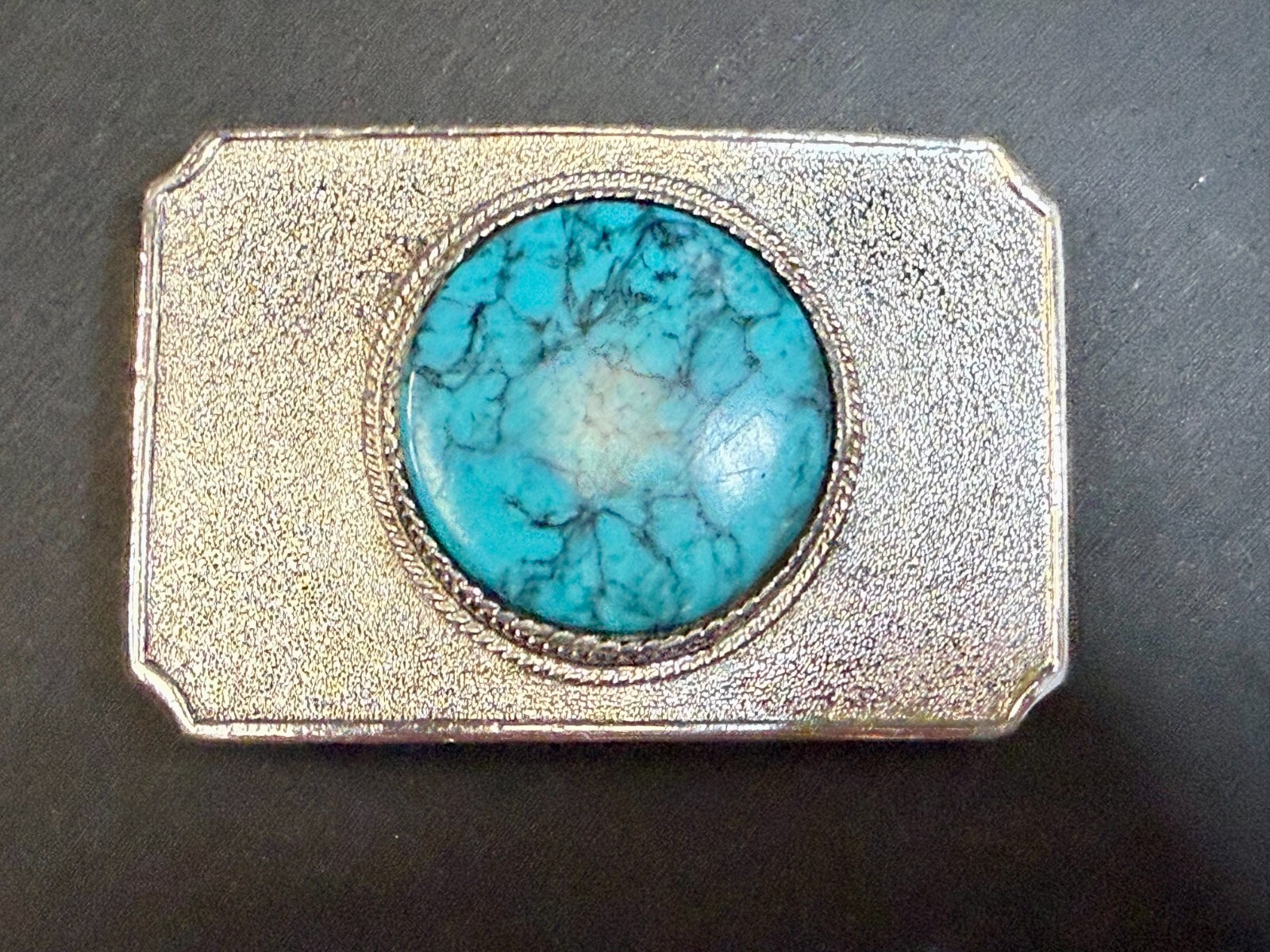 • Large Round Turquoise Stone Centered in Silver Color Western Belt Buckle