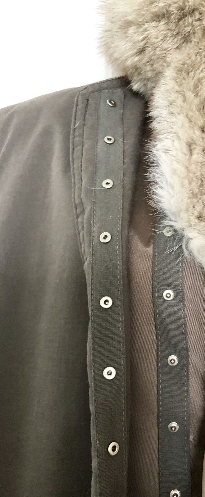 как выглядит Vtg Khaki Open Front Really Fur-Lined /Trimmed Long 3 in 1 Trench Coat L фото