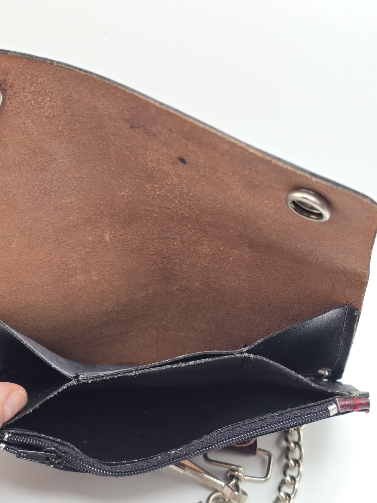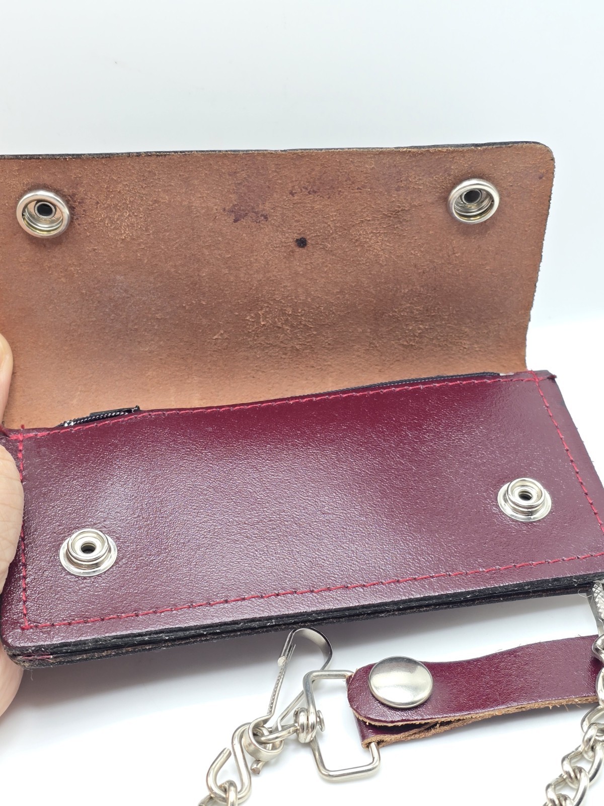 как выглядит Genuine Leather Mens Bikers Long Wallet Trucker Steel Chain Red READ фото