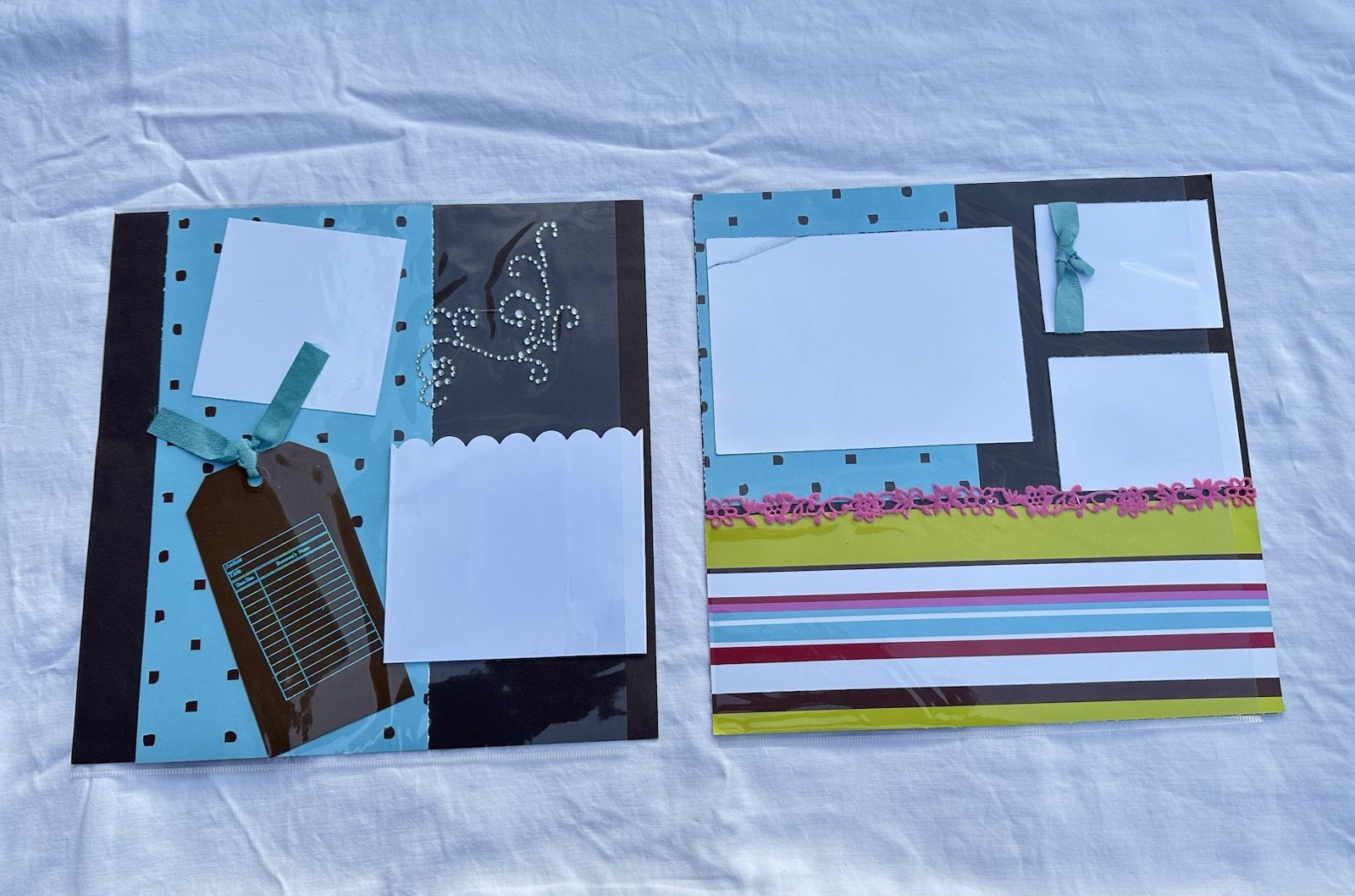 Set of 3 Pre Decorated Scrapbook Pages 12 x 12 Ready for Photos