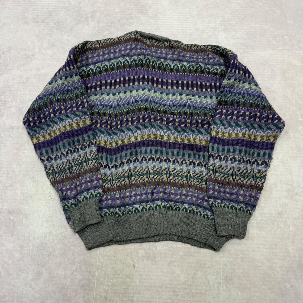 как выглядит Vintage Knitted Jumper abstract patterned grandad knit sweater Mens L фото