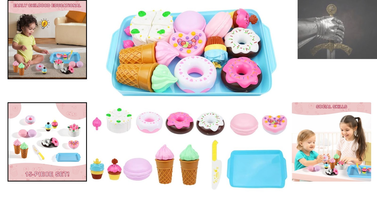 как выглядит Fun 15 PCS Play Food Set - Ice Cream, Cake Donut Toys for Imaginative Play фото