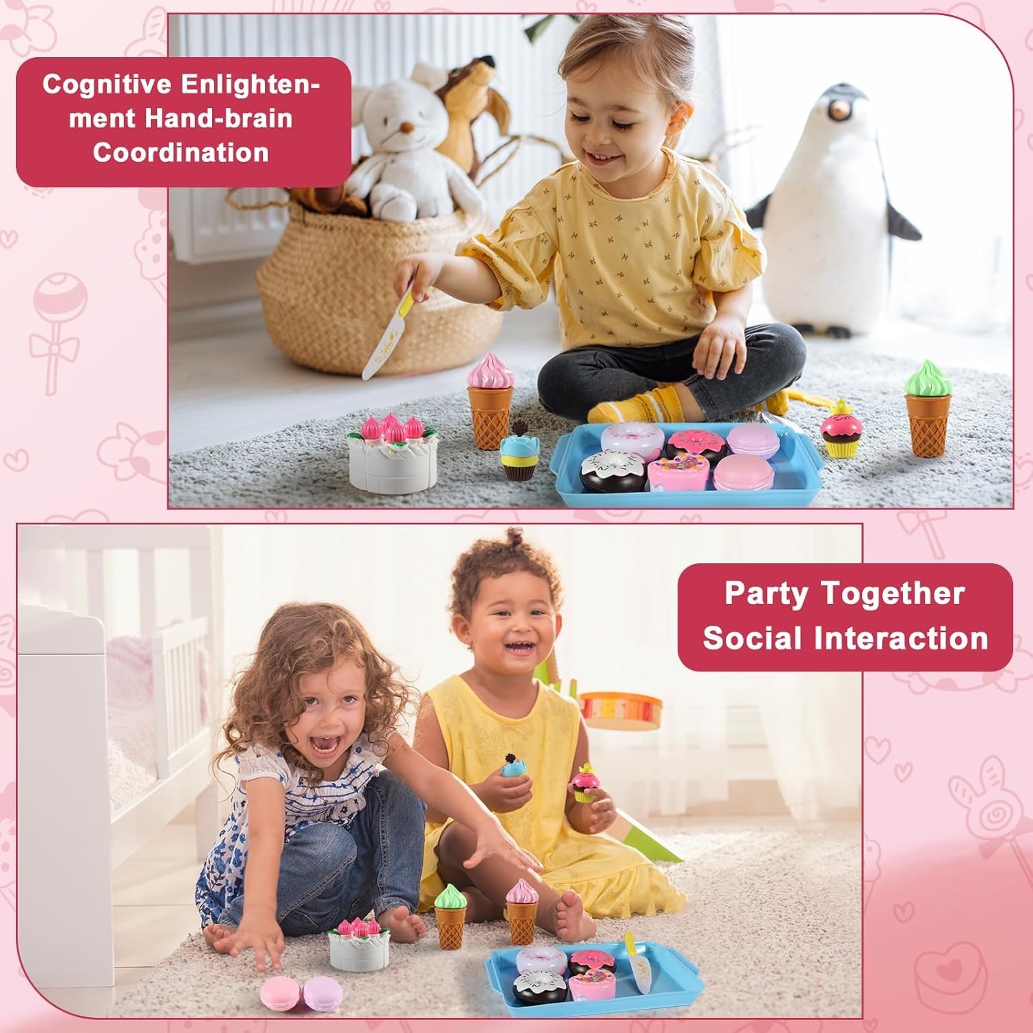Fun 15 PCS Play Food Set - Ice Cream, Cake Donut Toys for Imaginative Play