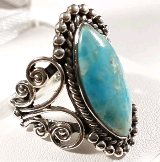 как выглядит 925 STERLING SILVER BEADED BRAIDED SCROLLS DESIGN TURQUOISE SIZE 8 RING 6.5g фото