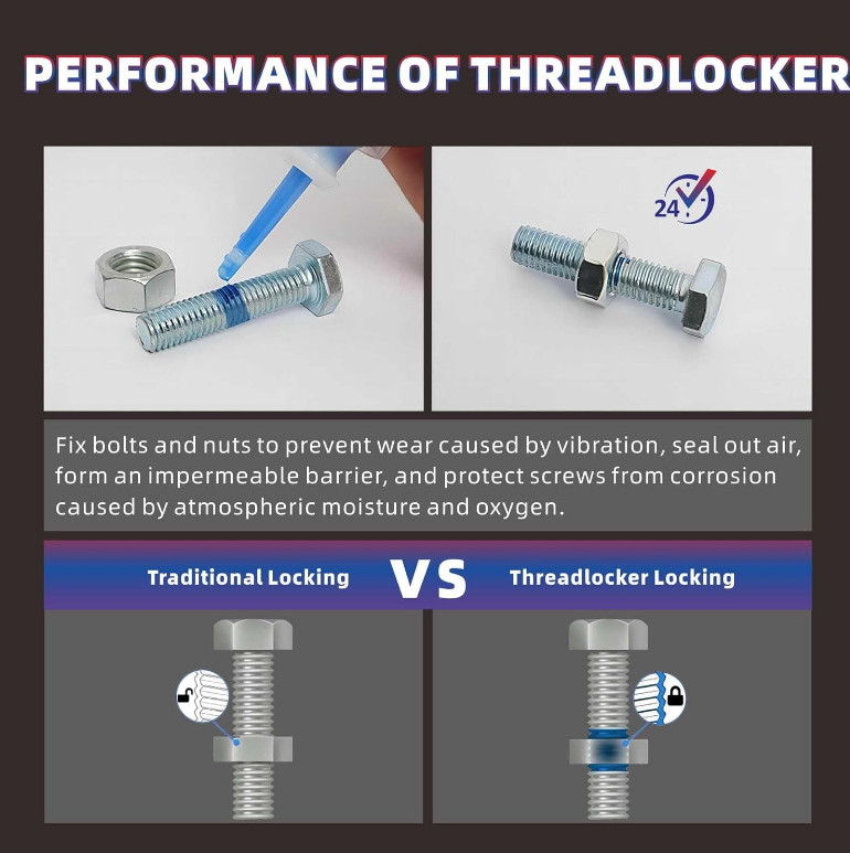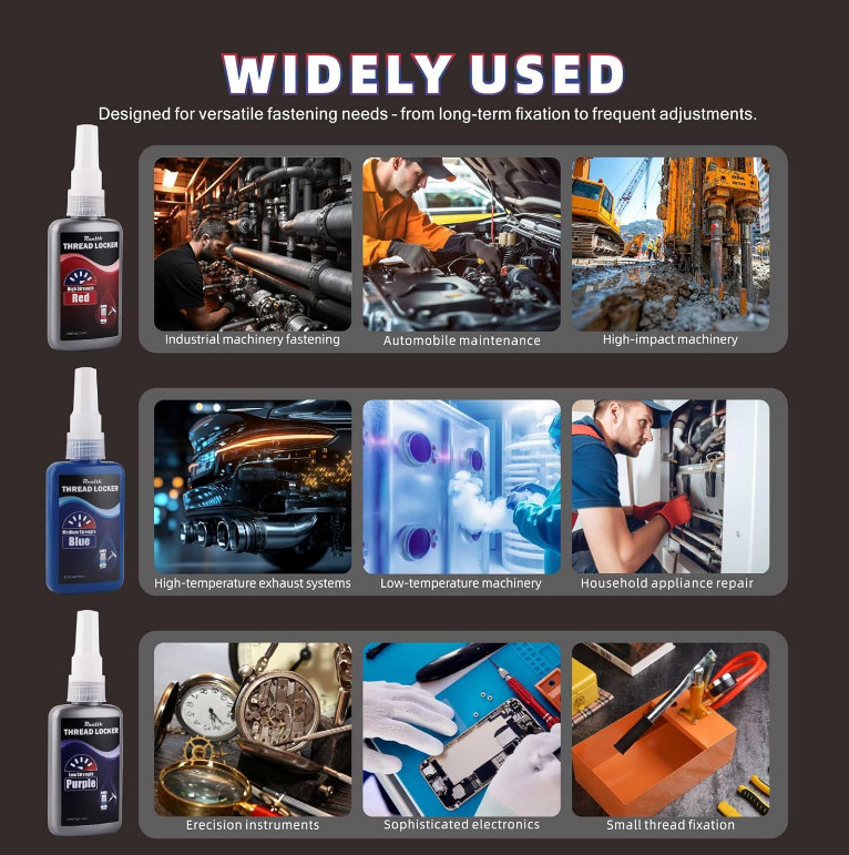 50ml-3 Pcs Threadlocker Purple Blue and Red,Low, Medium, High Strength Lock Tigh