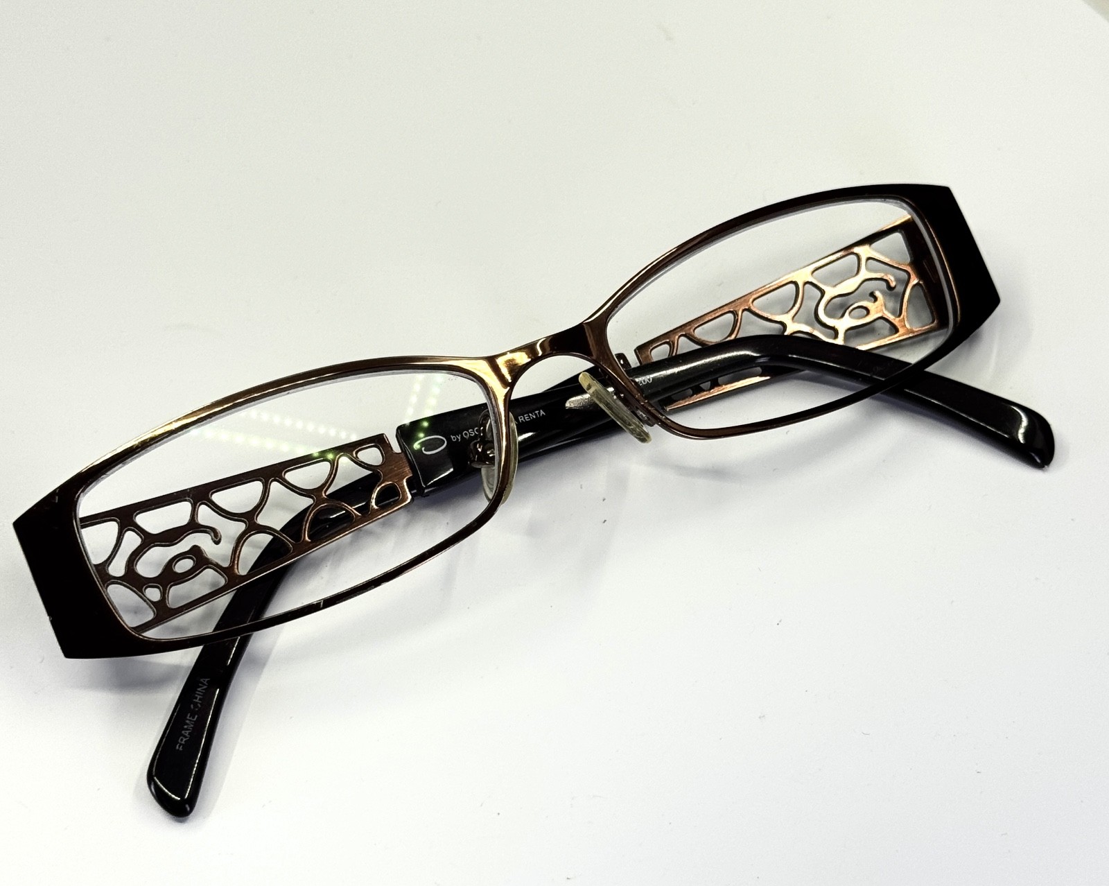 как выглядит VTG OSCAR DE LA RENTA OSL711 200 Womens Brown Rectangle Eyeglasses FRAMES ONLY фото