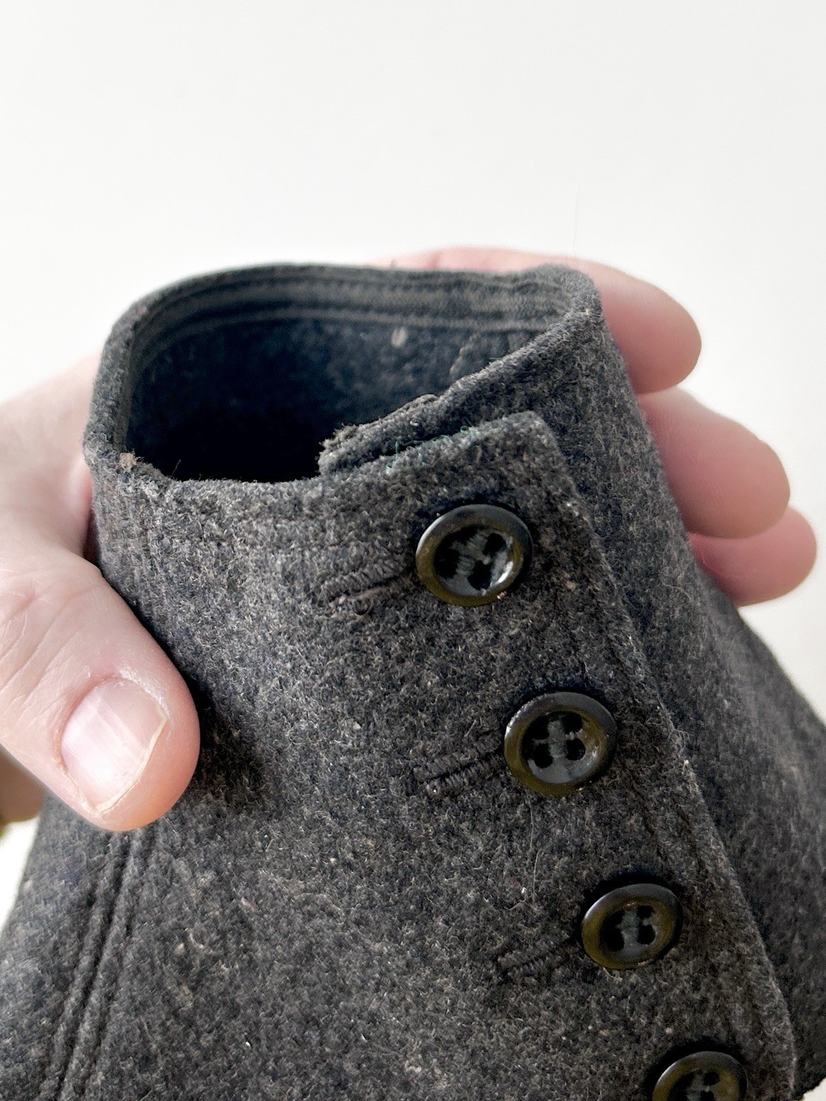 Antique Victorian Wool Spats Gray Felt 4 Tall w/ Leather Straps Coachman
