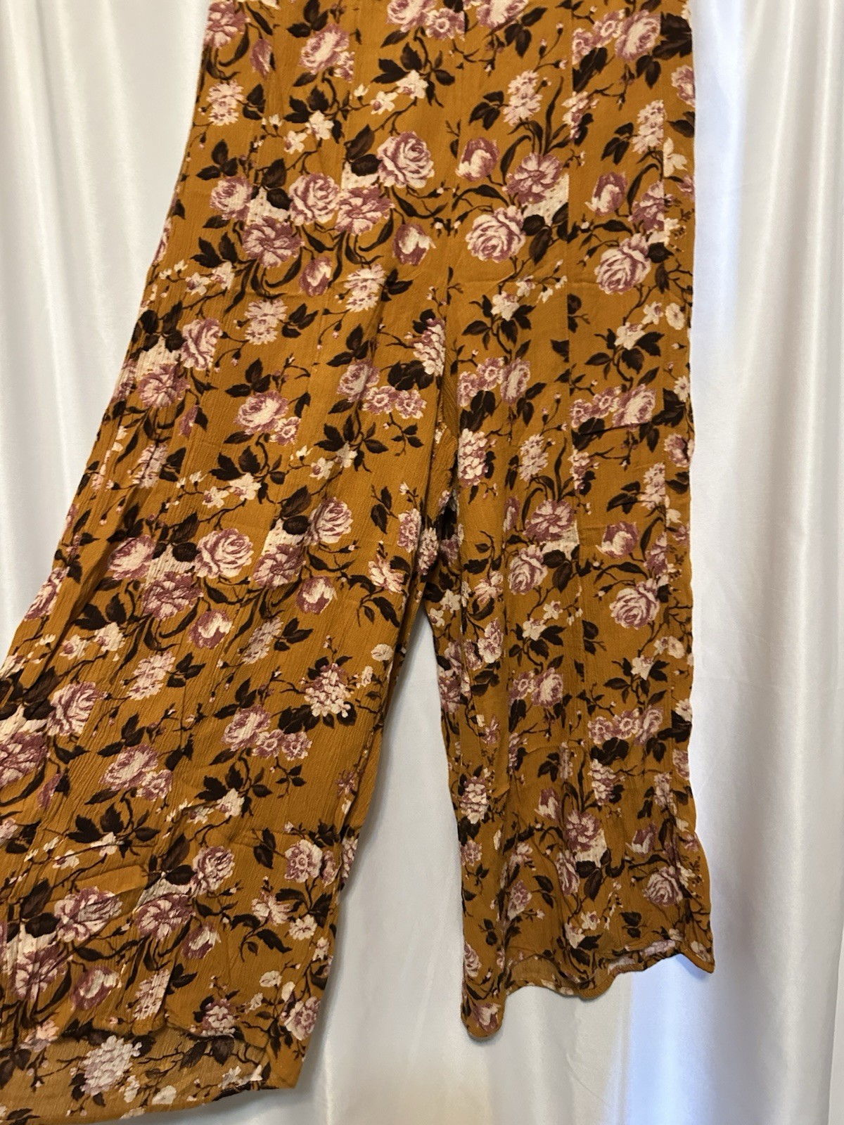как выглядит American Eagle Pants Womens Size S Floral Wide Leg Burnt Orange Elastic waist фото