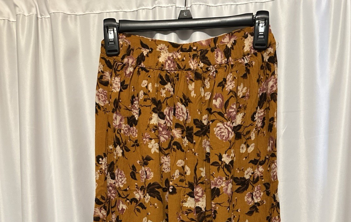 American Eagle Pants Womens Size S Floral Wide Leg Burnt Orange Elastic waist