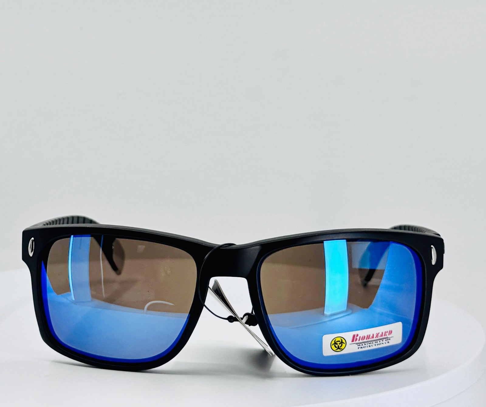 как выглядит BIOHAZARD 66202 BLACK BLUE Mens Square Full Rim Sunglasses Mirrored Blue Lens фото