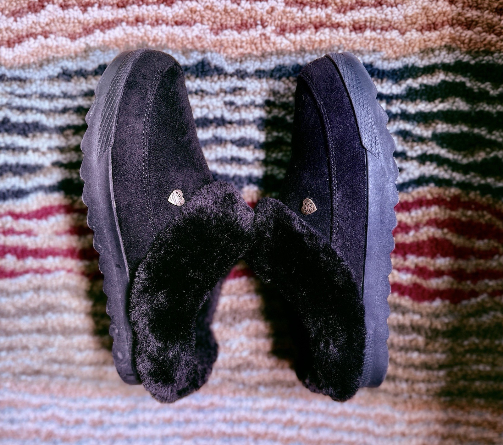 Bobs Skechers Cozy Black And Furry Ladies Slippers