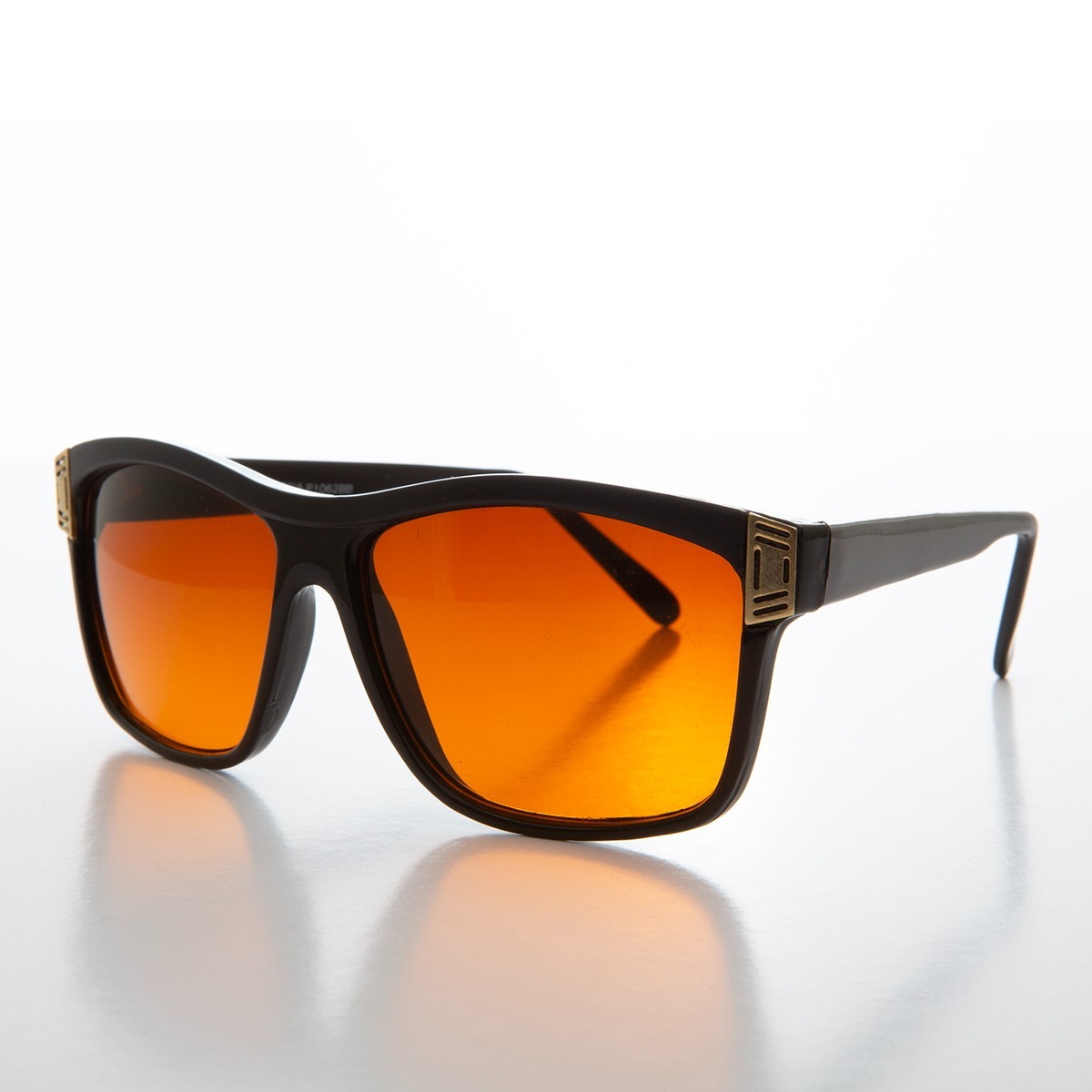 Square Orange Lens Vintage Sunglasses Black - Hunt