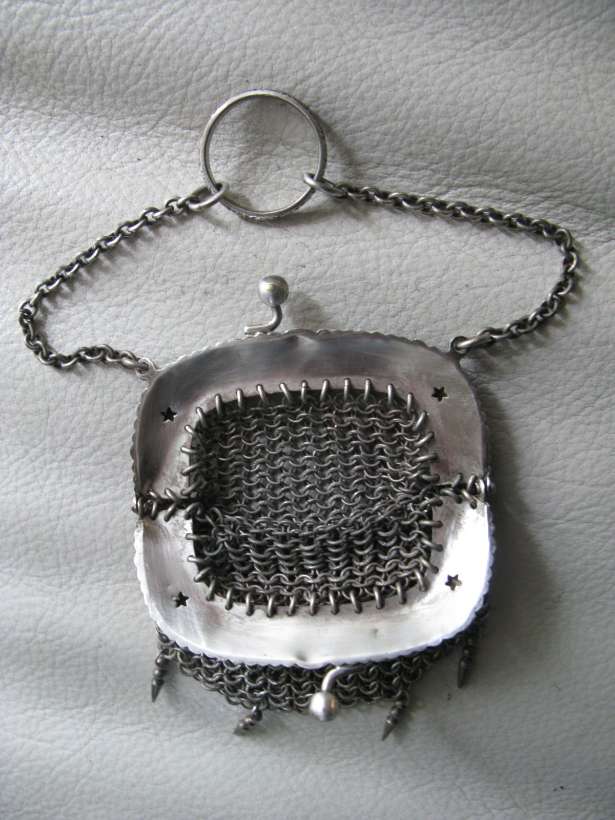 как выглядит Antique Chatelaine Art Nouveau Silver Floral Frame 4 Tassel Mesh Coin Purse фото