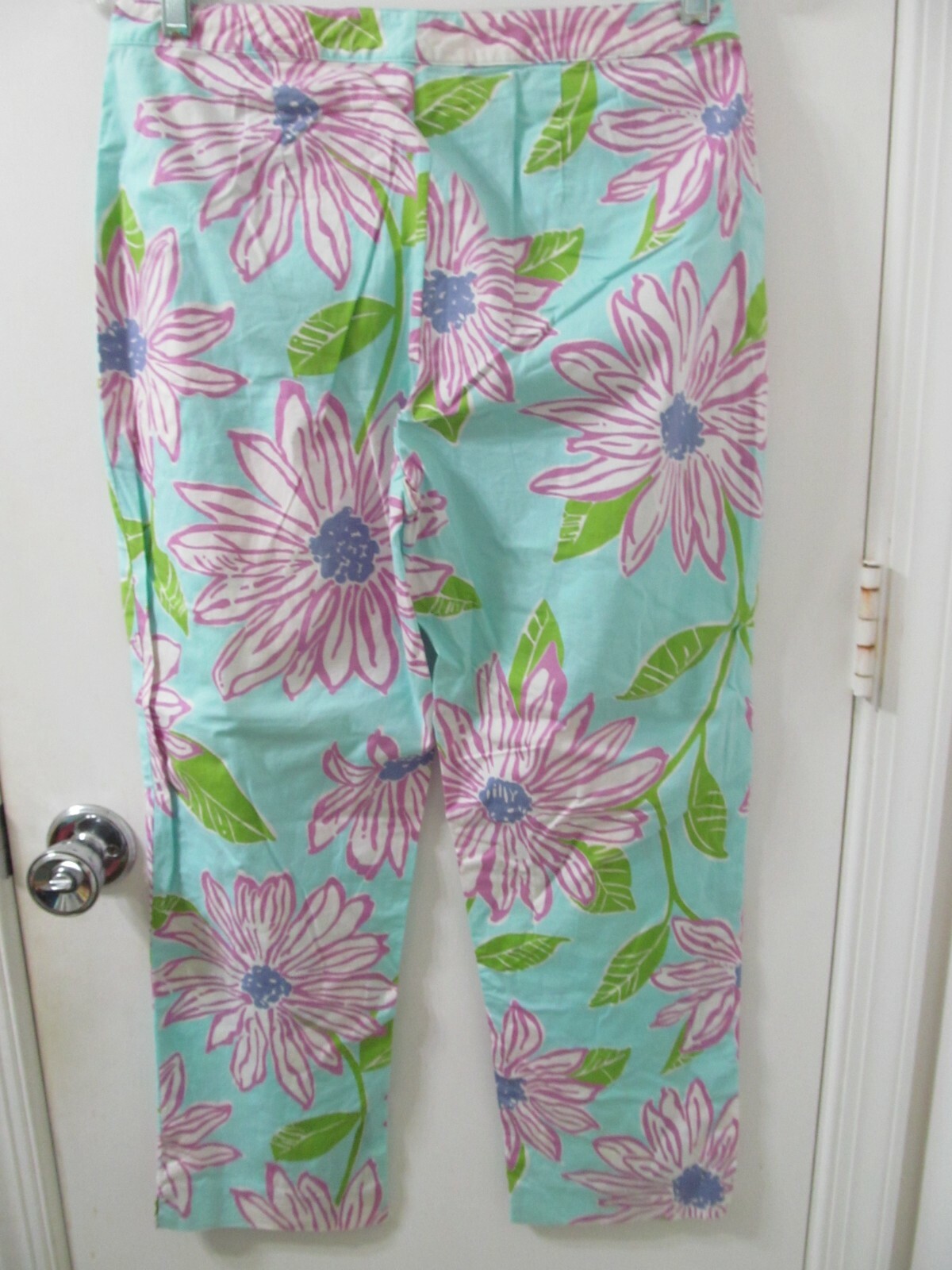 Lilly Pulitzer sz 6 pants Vintage blue w/ purple white large flowers