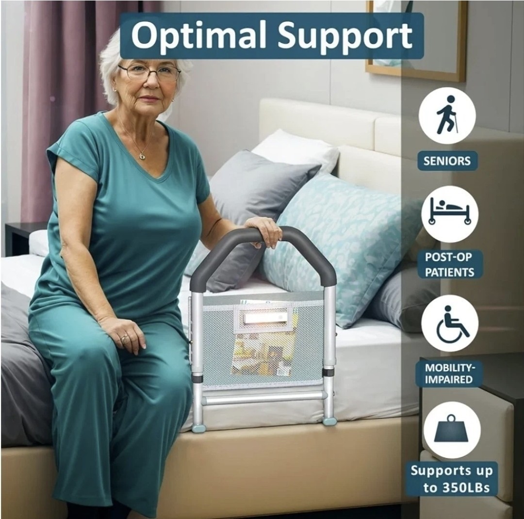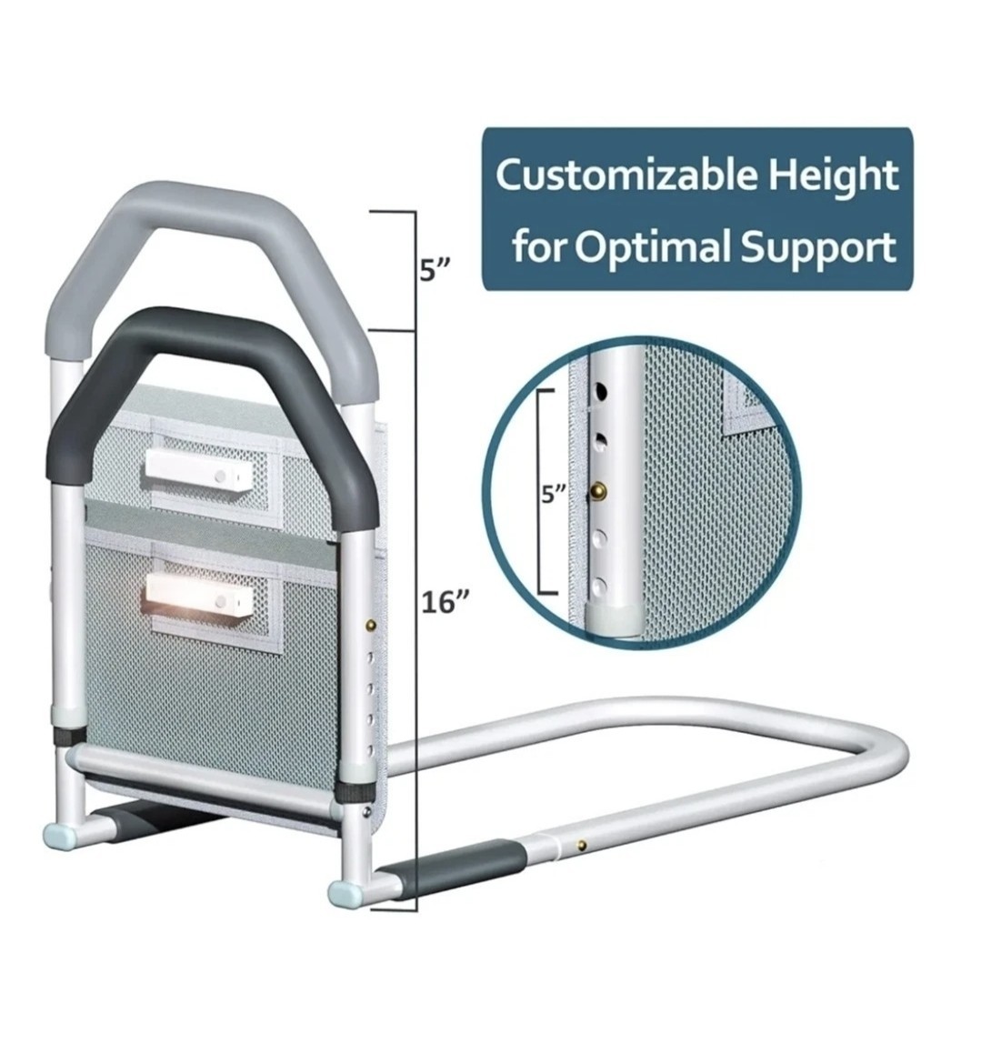 Bed Rails for Elderly Adults Safety - W/Motion Light Storage Pocket