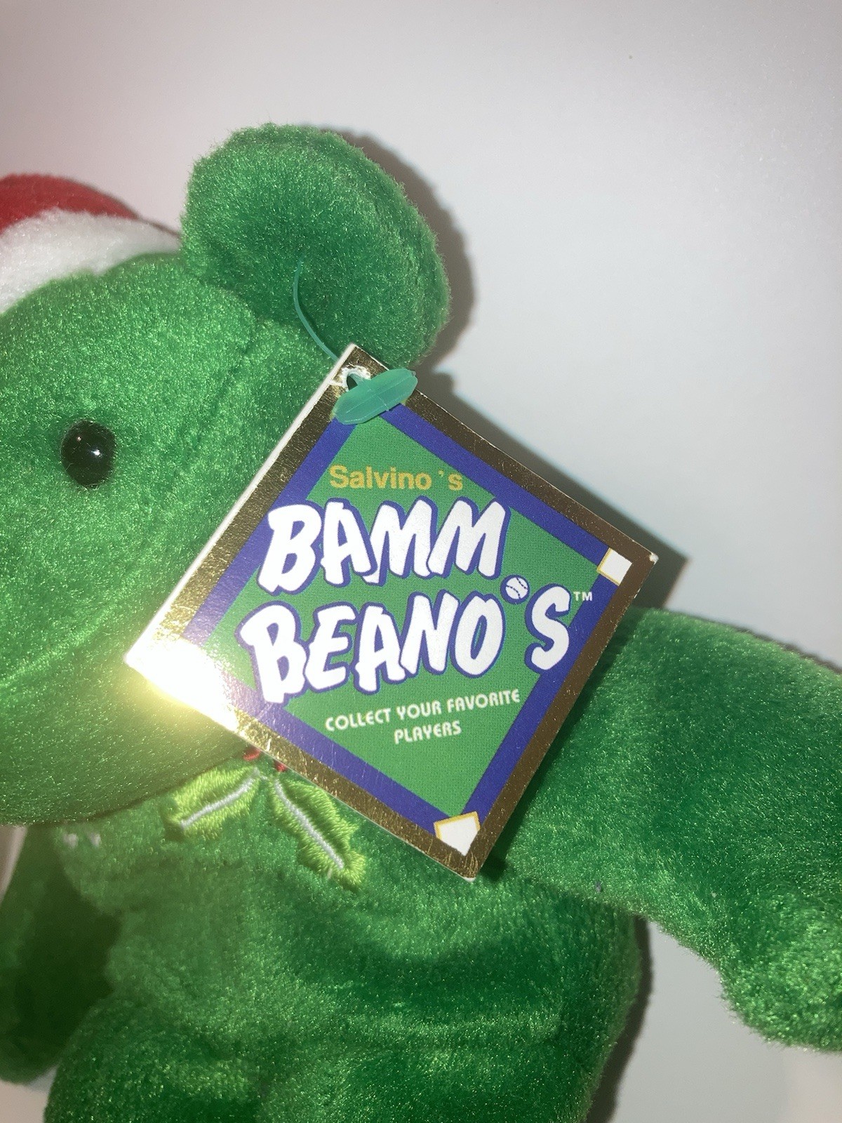 как выглядит 1998 David Justice 23 Salvinos Christmas BAMM BEANOS Plush Green Bear фото