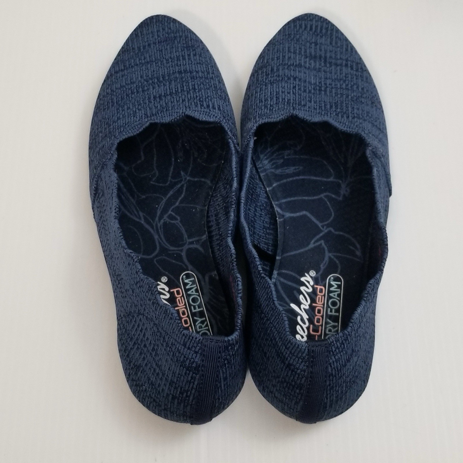 Skechers Women's 6.5 Cleo Newford Slip-On Ballet Flats 44870 Blue Fabric Stretch