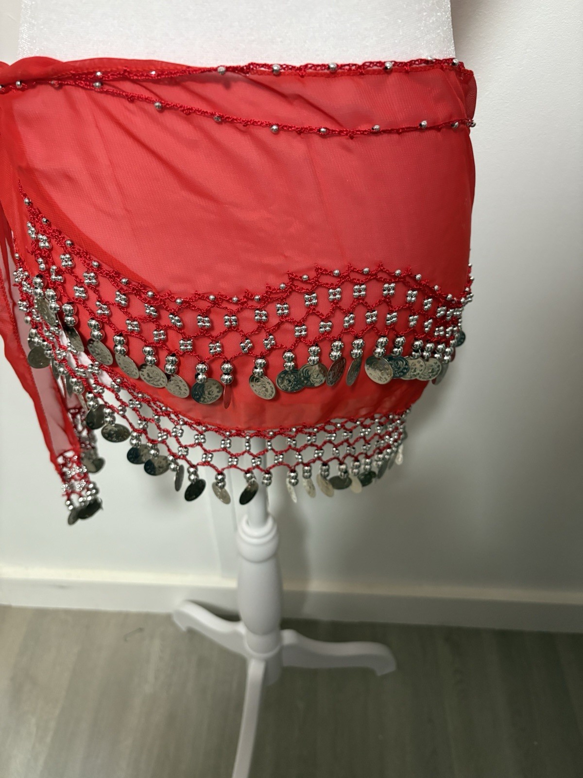 как выглядит Red Belly Dance Hip Wrap Skirt Scarf With Dangling Silver Coins One Size фото