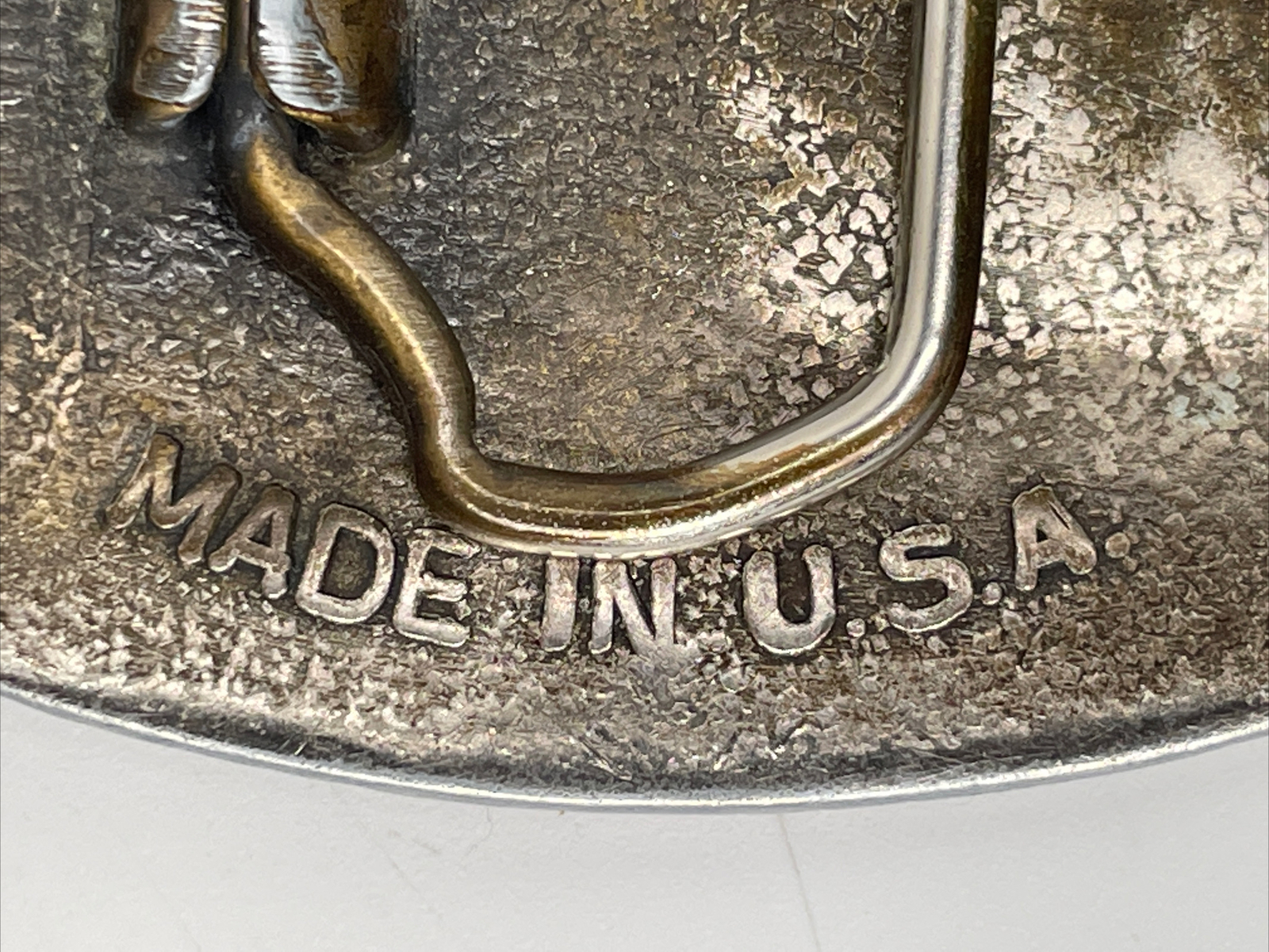 Vintage Silver Tone Metal The State of Texas Seal Lone Star Belt Buckle USA Worn