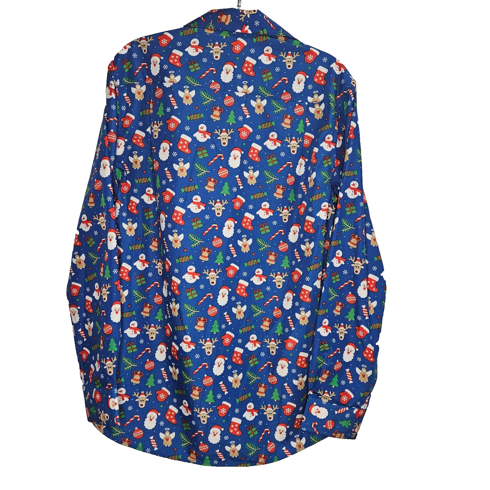 как выглядит Simon Banks Mens Long Sleeve Santa Print Small Button Up Shirt Christmas Party фото