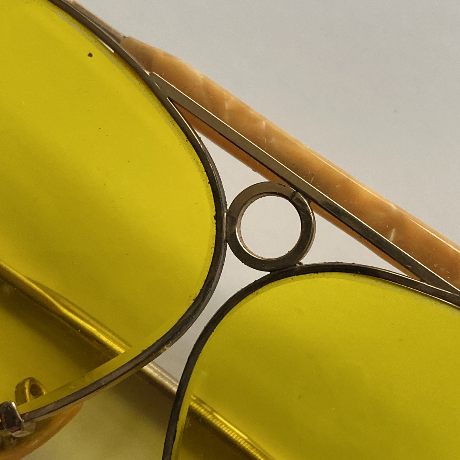 Vtg RAY BAN Bausch Lomb Yellow Shooter Aviators w/Case. 1/10 12k GF Near Mint.