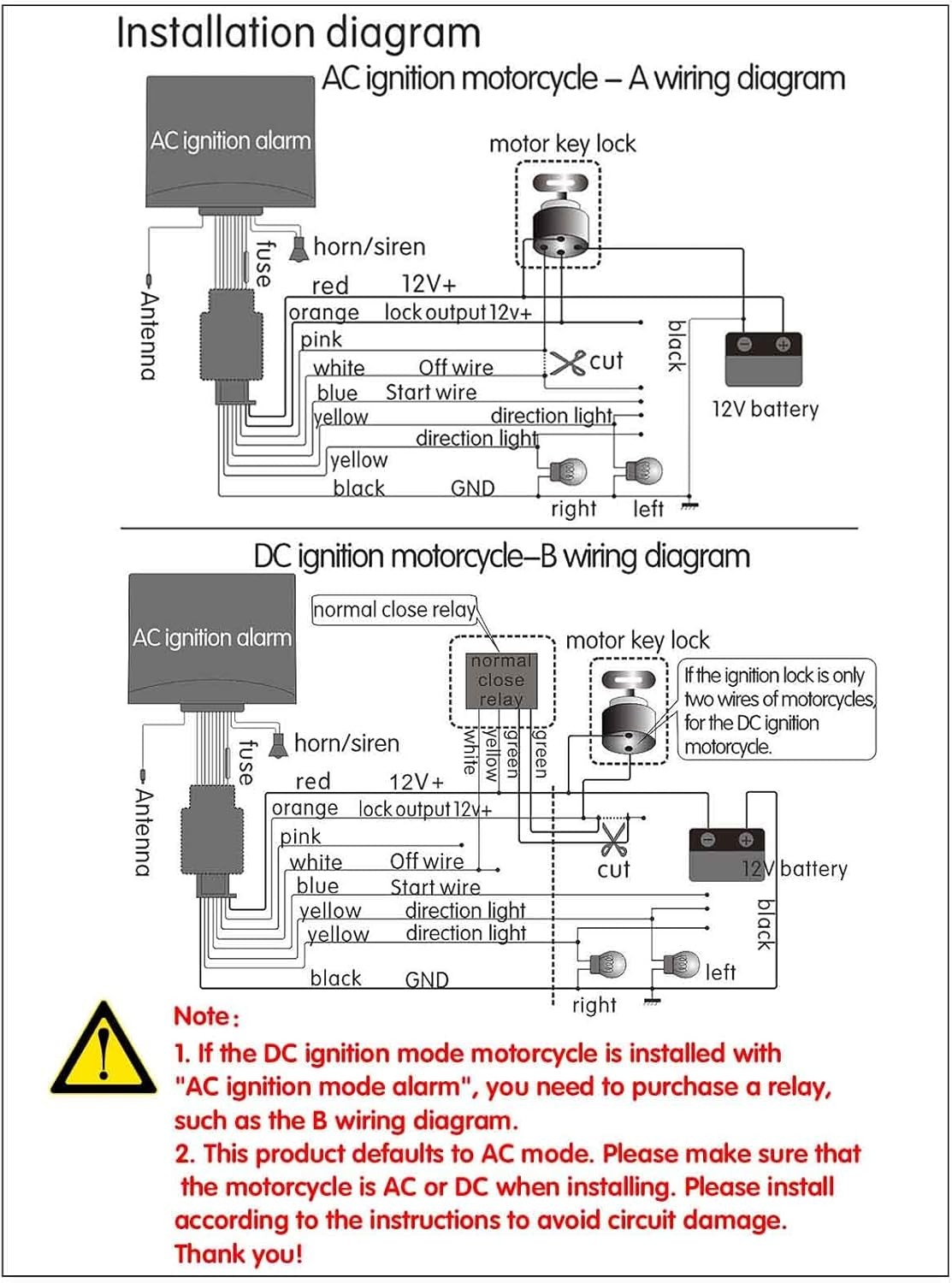DC12V Motorcycle Anti-Theft Alarm Security System Remote Control Engine Start Bi
