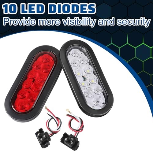 12 Pack Oval LED Trailer Light Kit - 10 LED Stop Reverse, Turn, Red, White