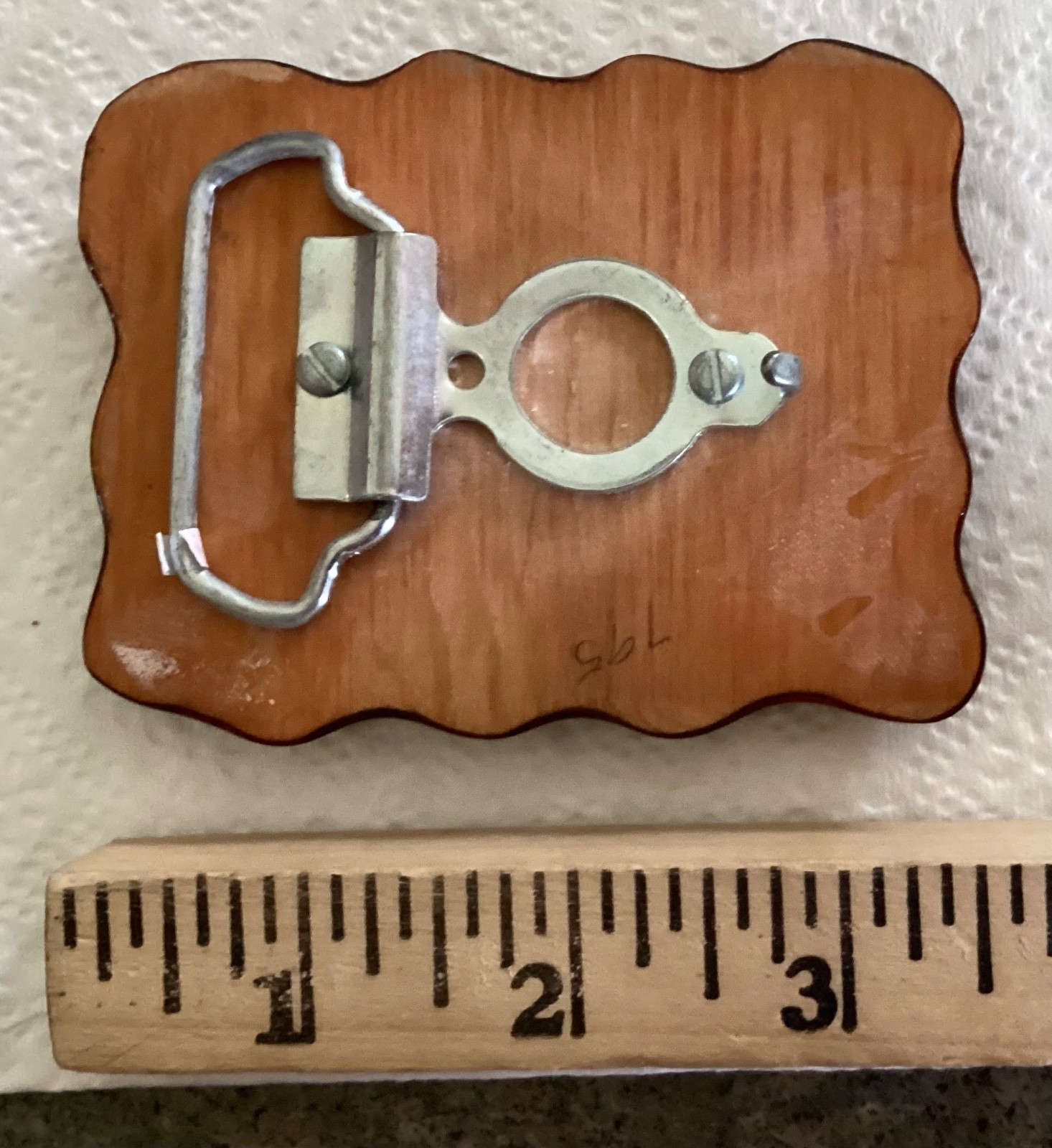 Vintage Buffalo Bison Epoxy Wood Belt Buckle VGUC Aprox 3 1/2 x 2 1/4