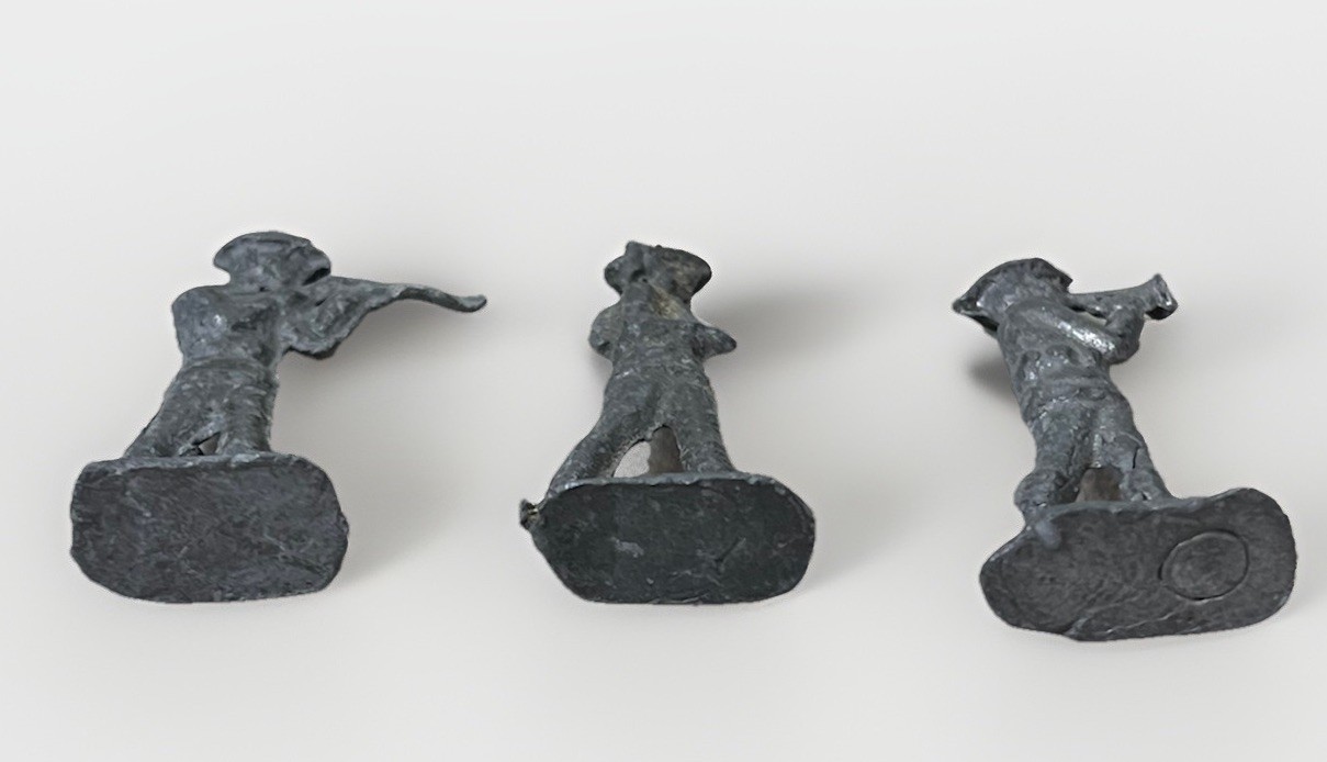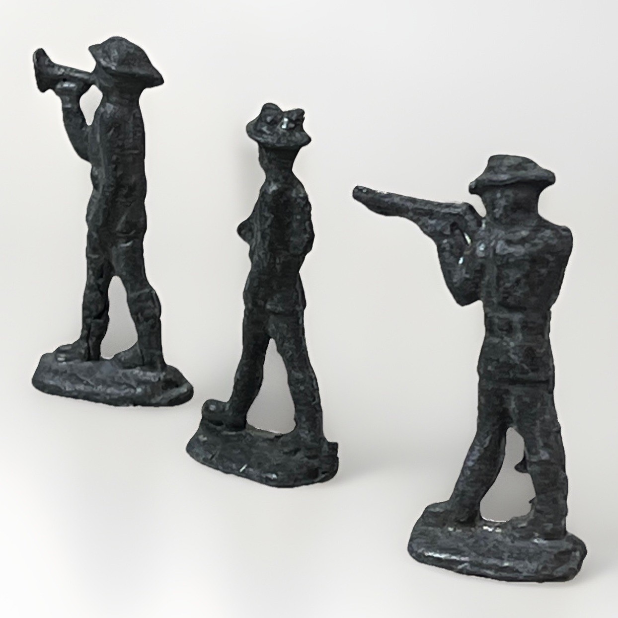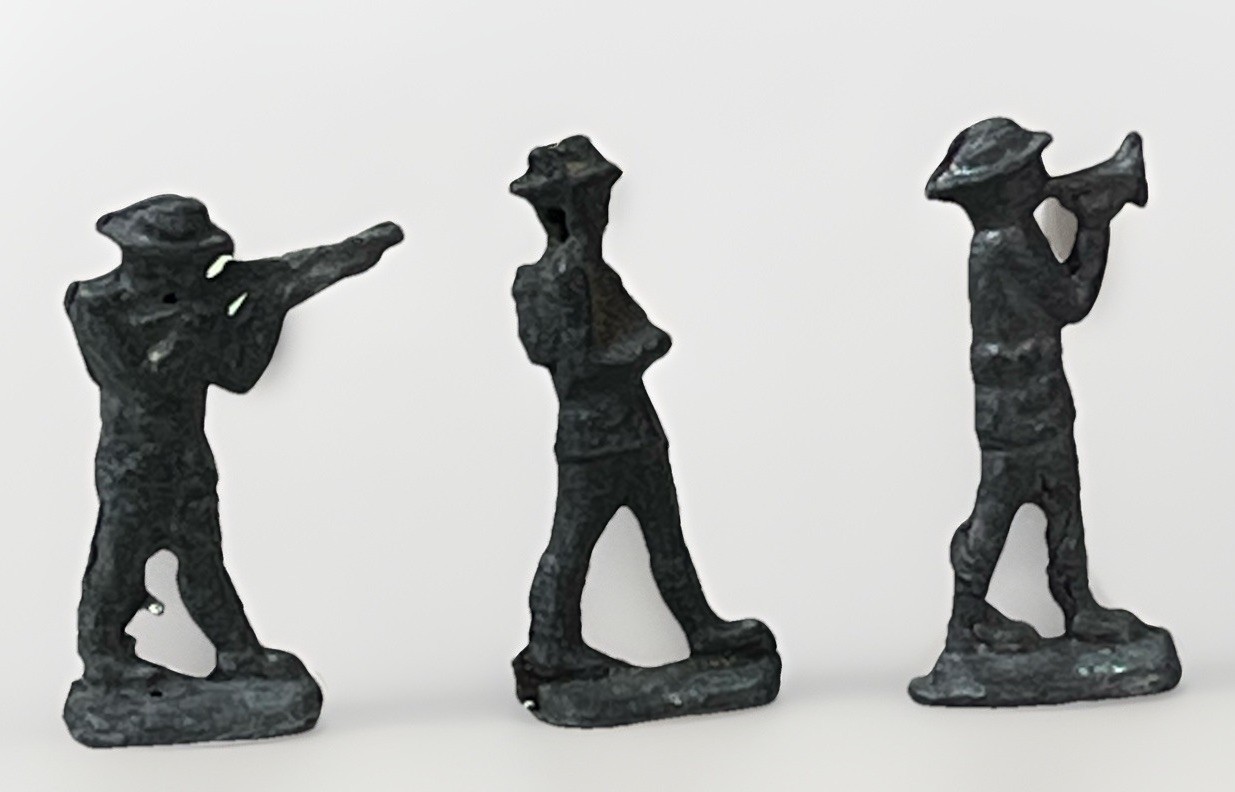 как выглядит Lot of 3 Antique Cast Lead Toy Soldiers Rifleman Bugler Marching Figures фото