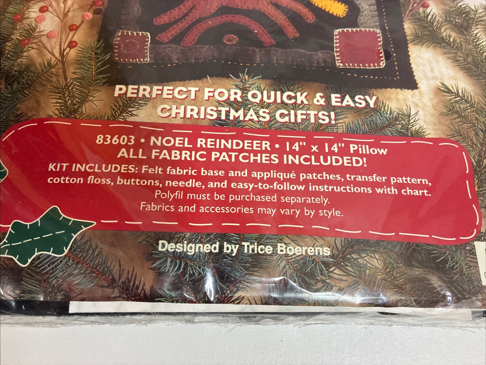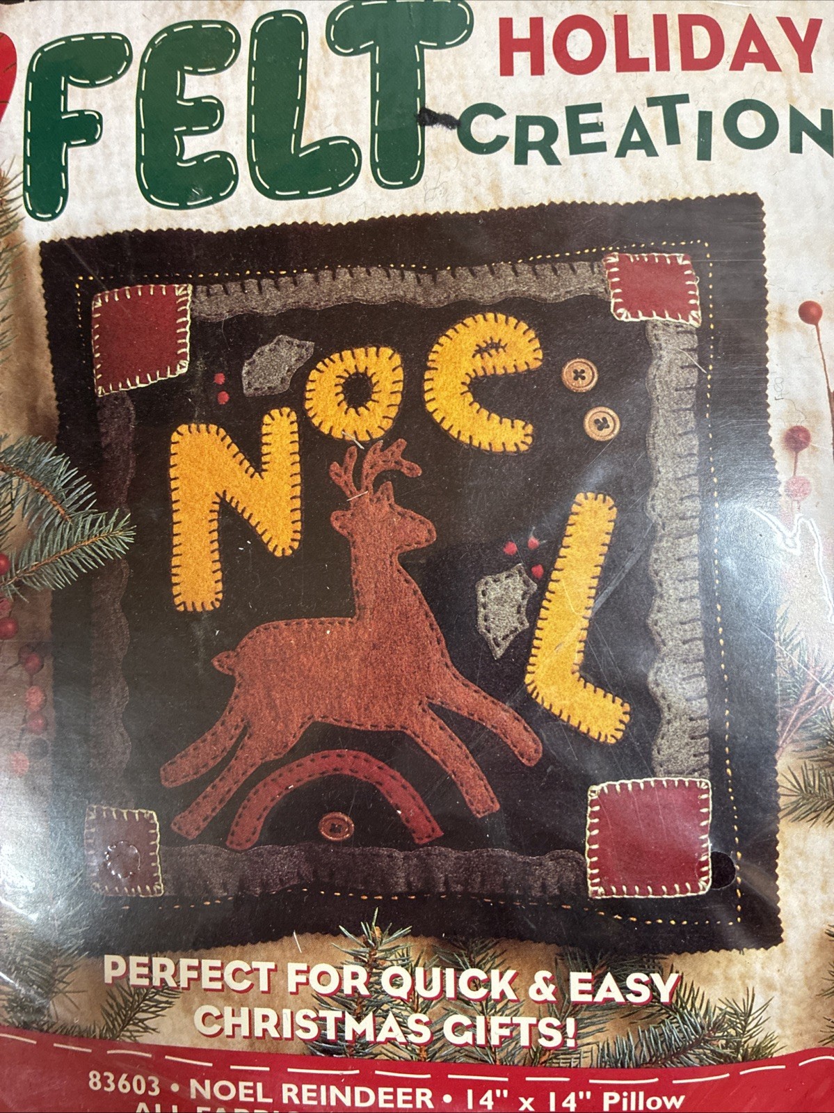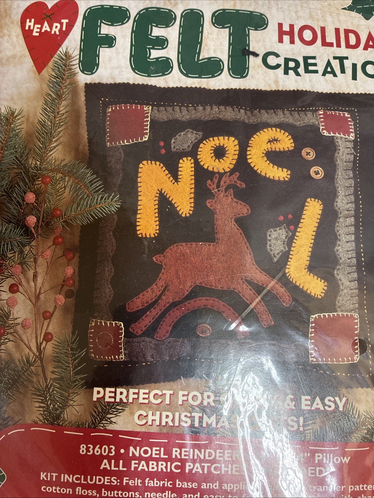 New Bucilla Felt Holiday Creations Noel Reindeer Christmas 14x14 Pillow Kit