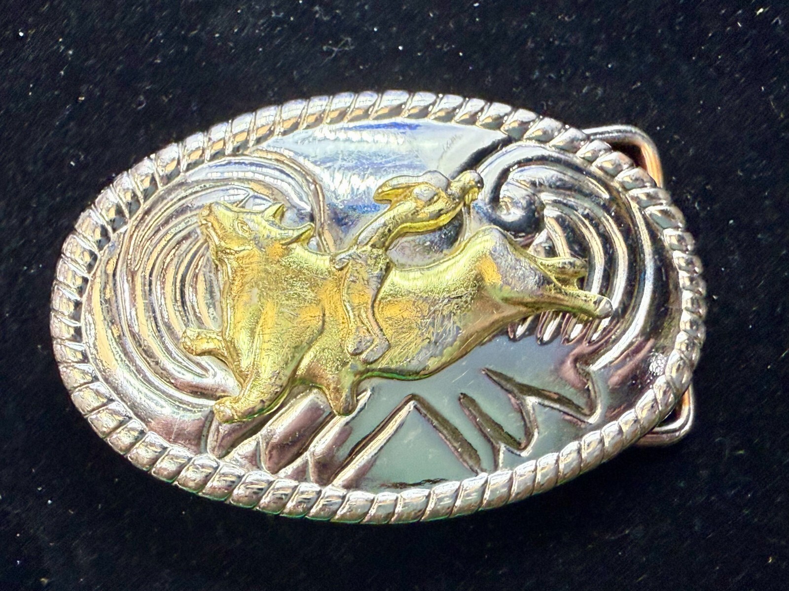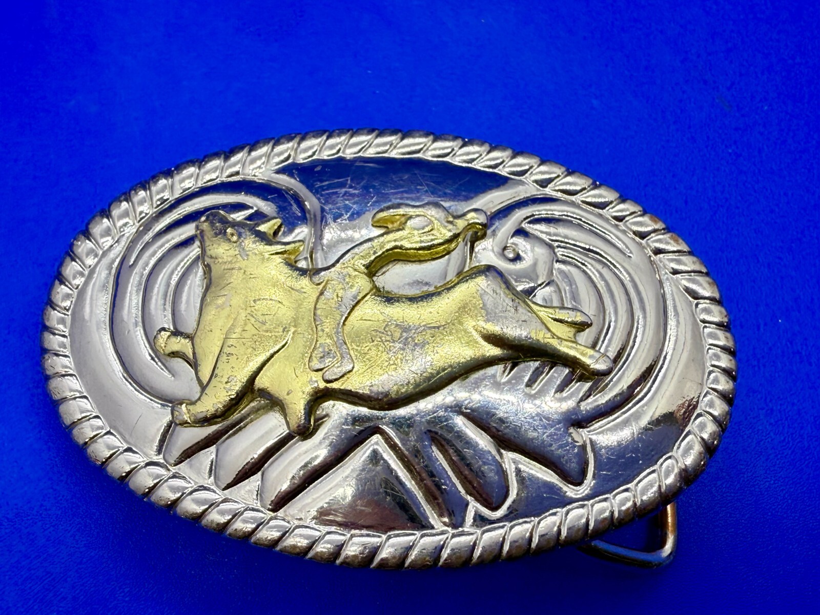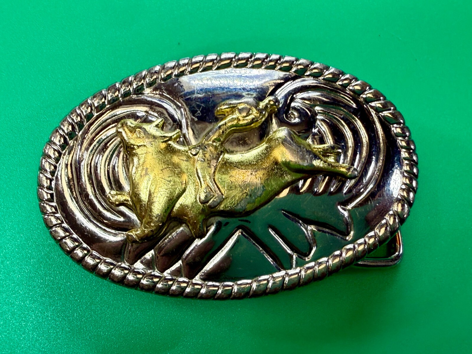 Cowgirls Kids Vintage Cowboy Saddle Bronc Western Two Tone Small Belt Buckle