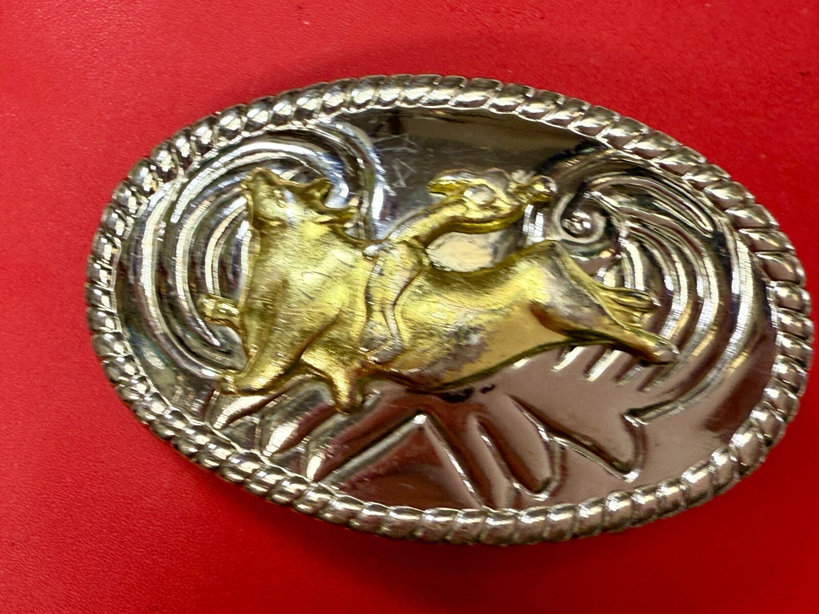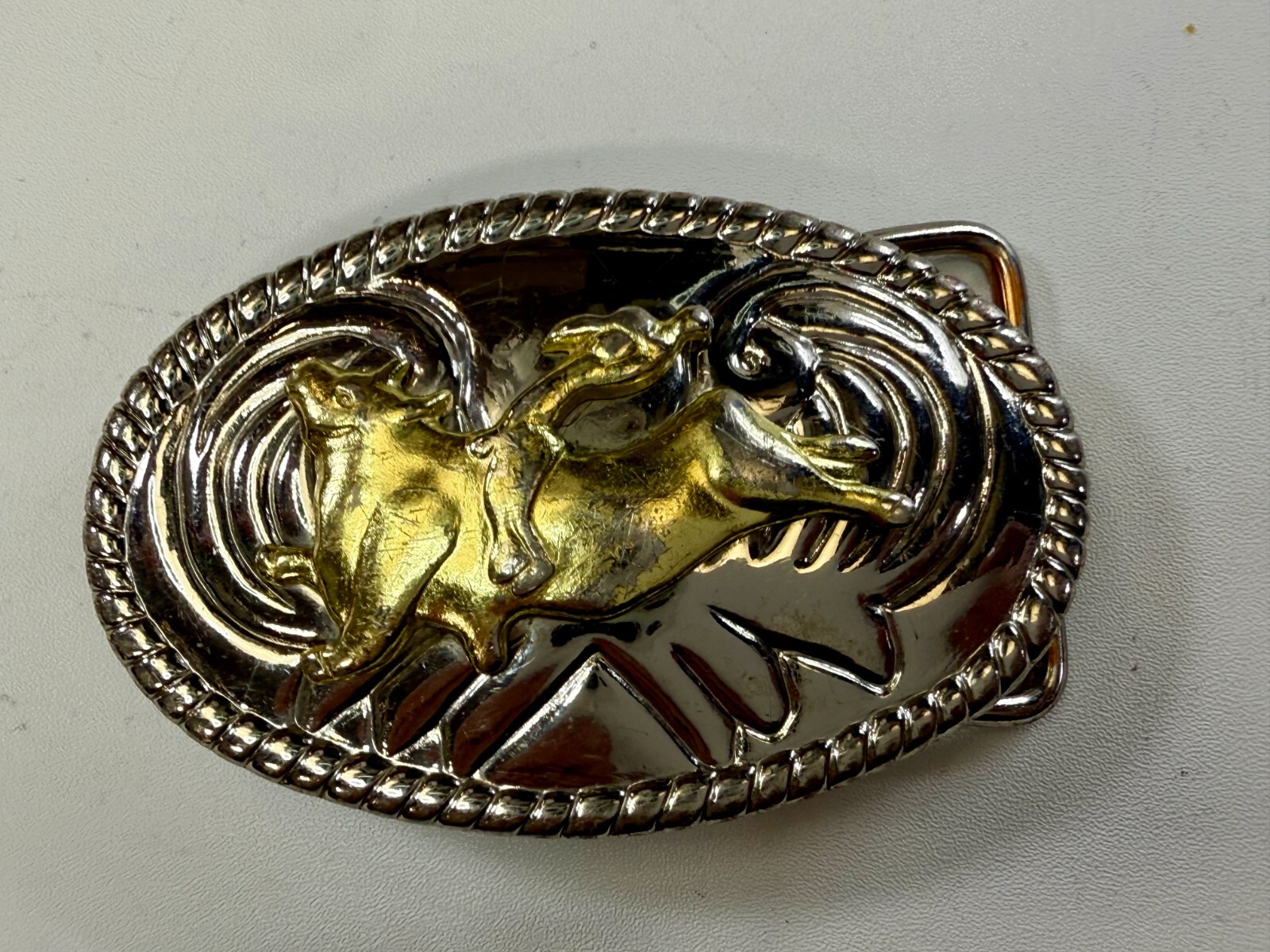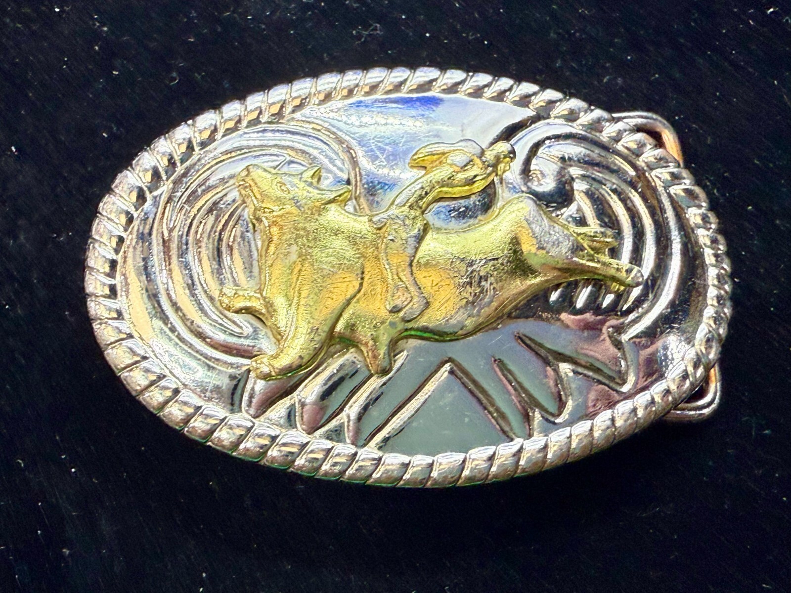 Cowgirls Kids Vintage Cowboy Saddle Bronc Western Two Tone Small Belt Buckle