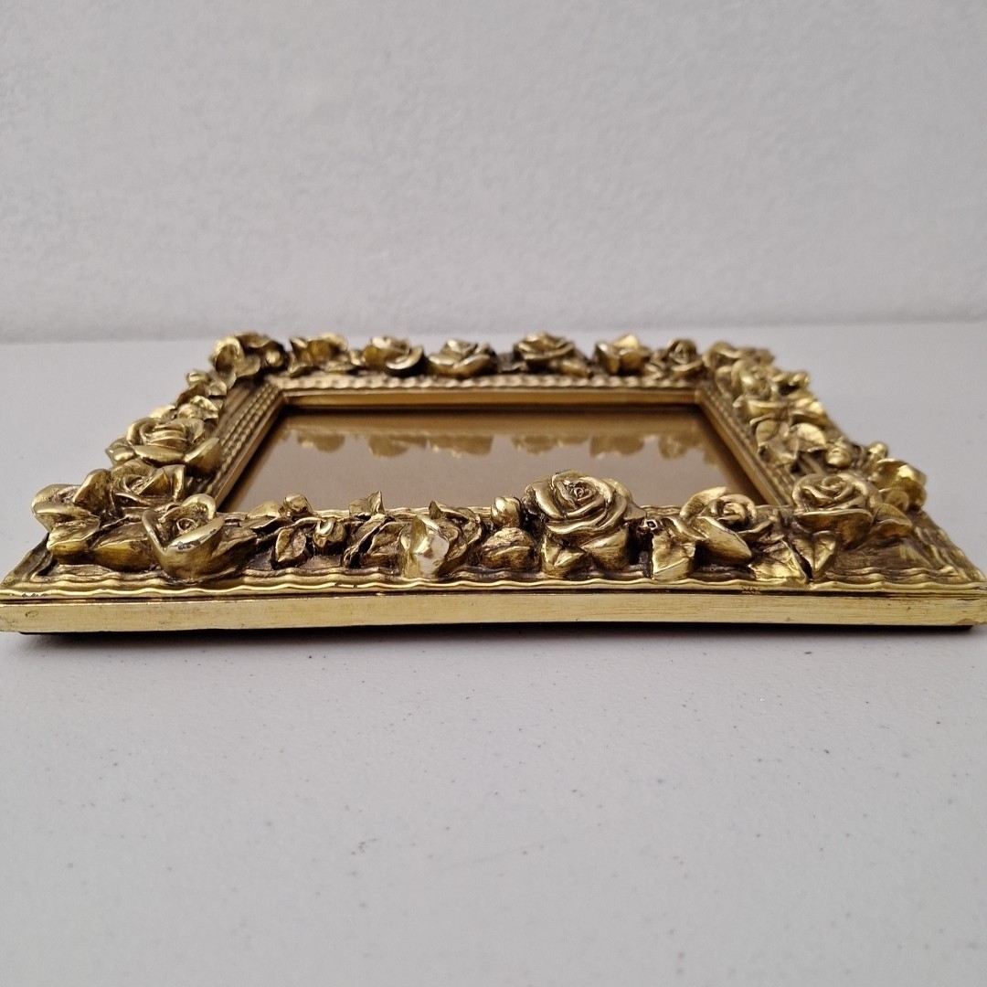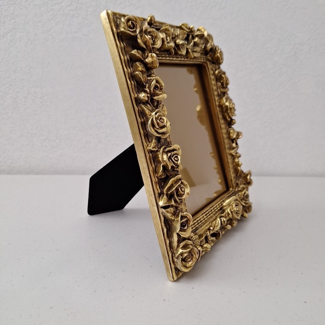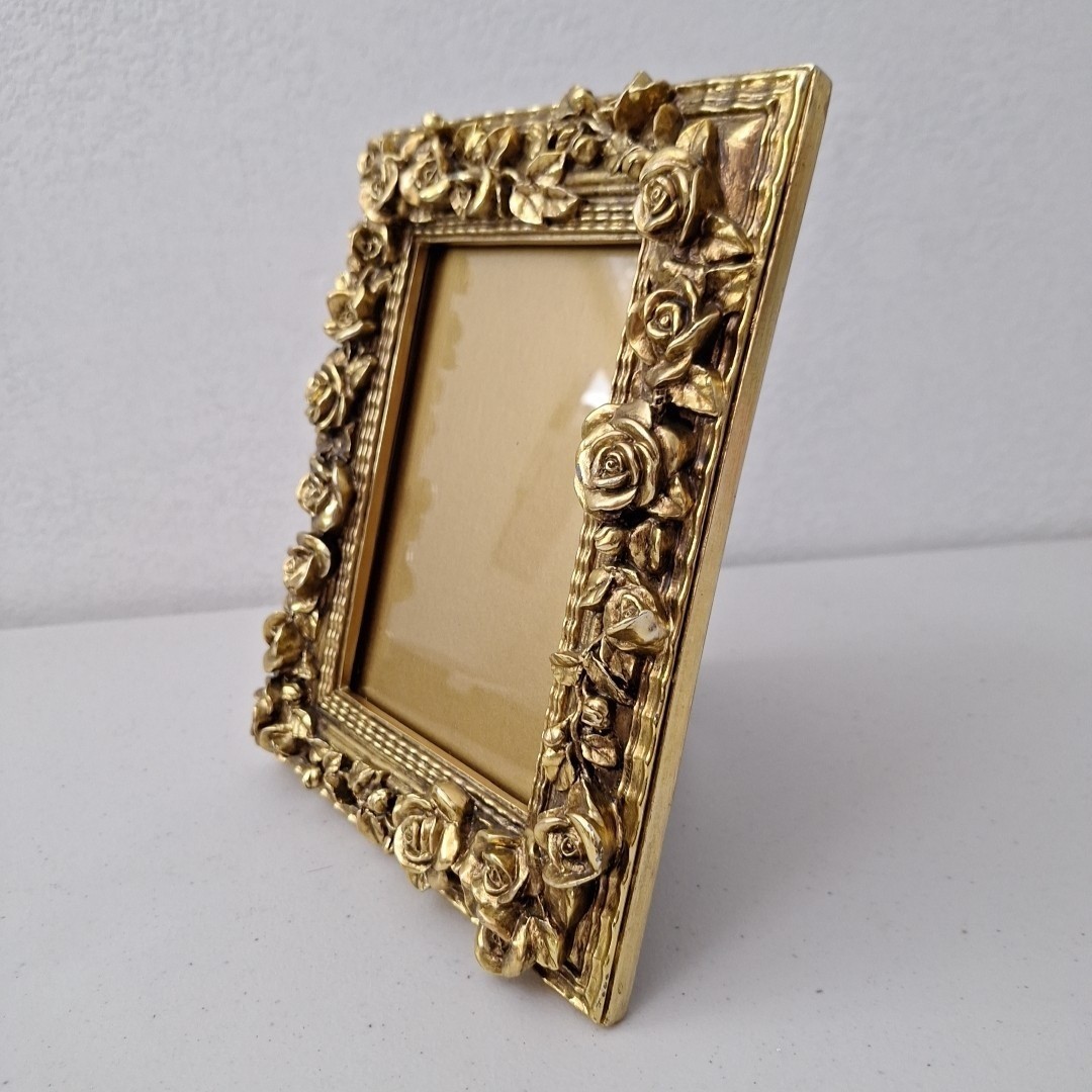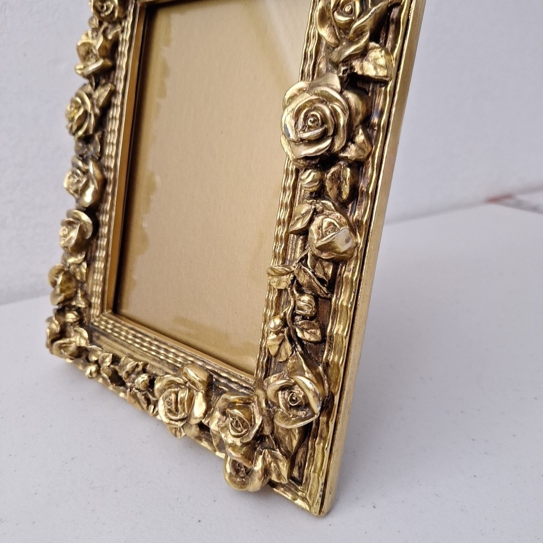 как выглядит Vintage Mid-Century Modern Ornate HEAVY Gold Picture Frame Roses 10" x 8" фото