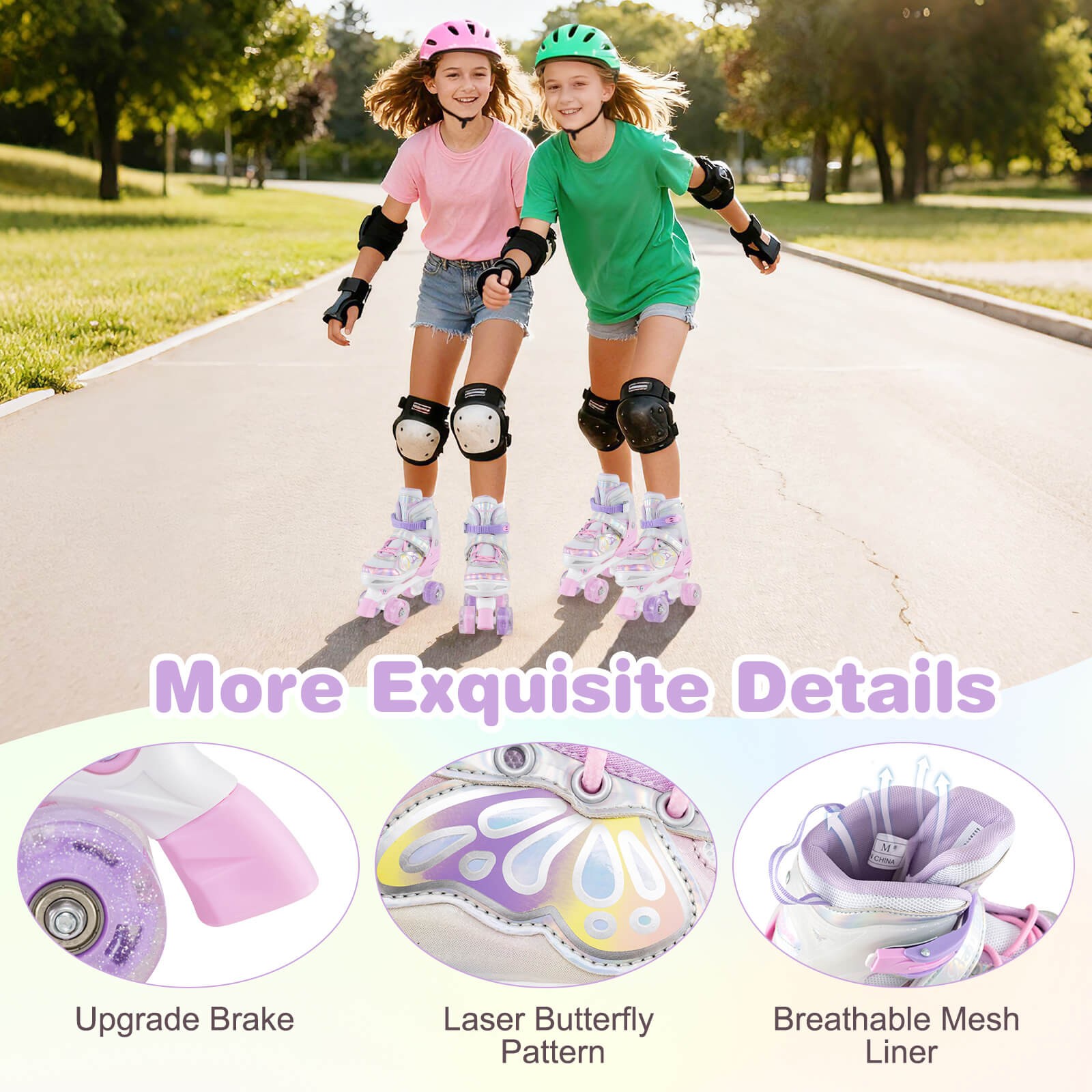 4 Sizes Adjustable Quad Skates w/Light-up Wheels Safety Protection for Ages 13