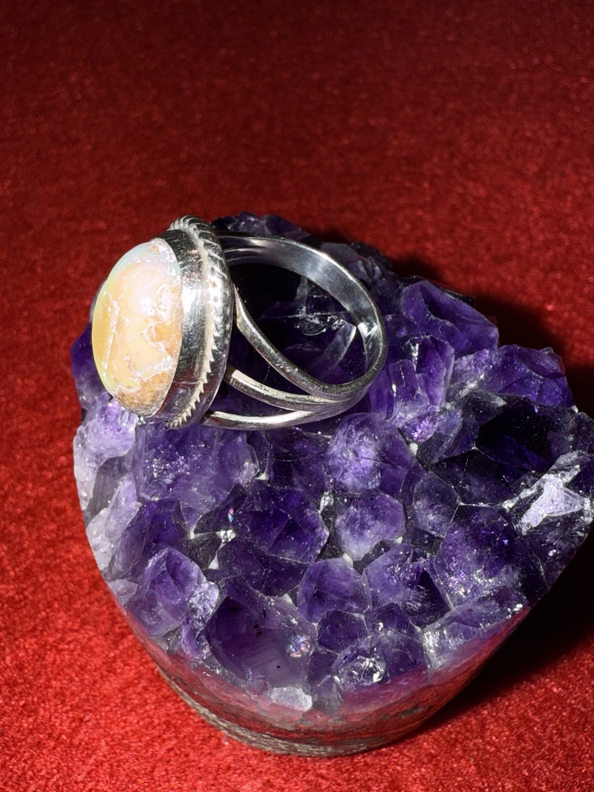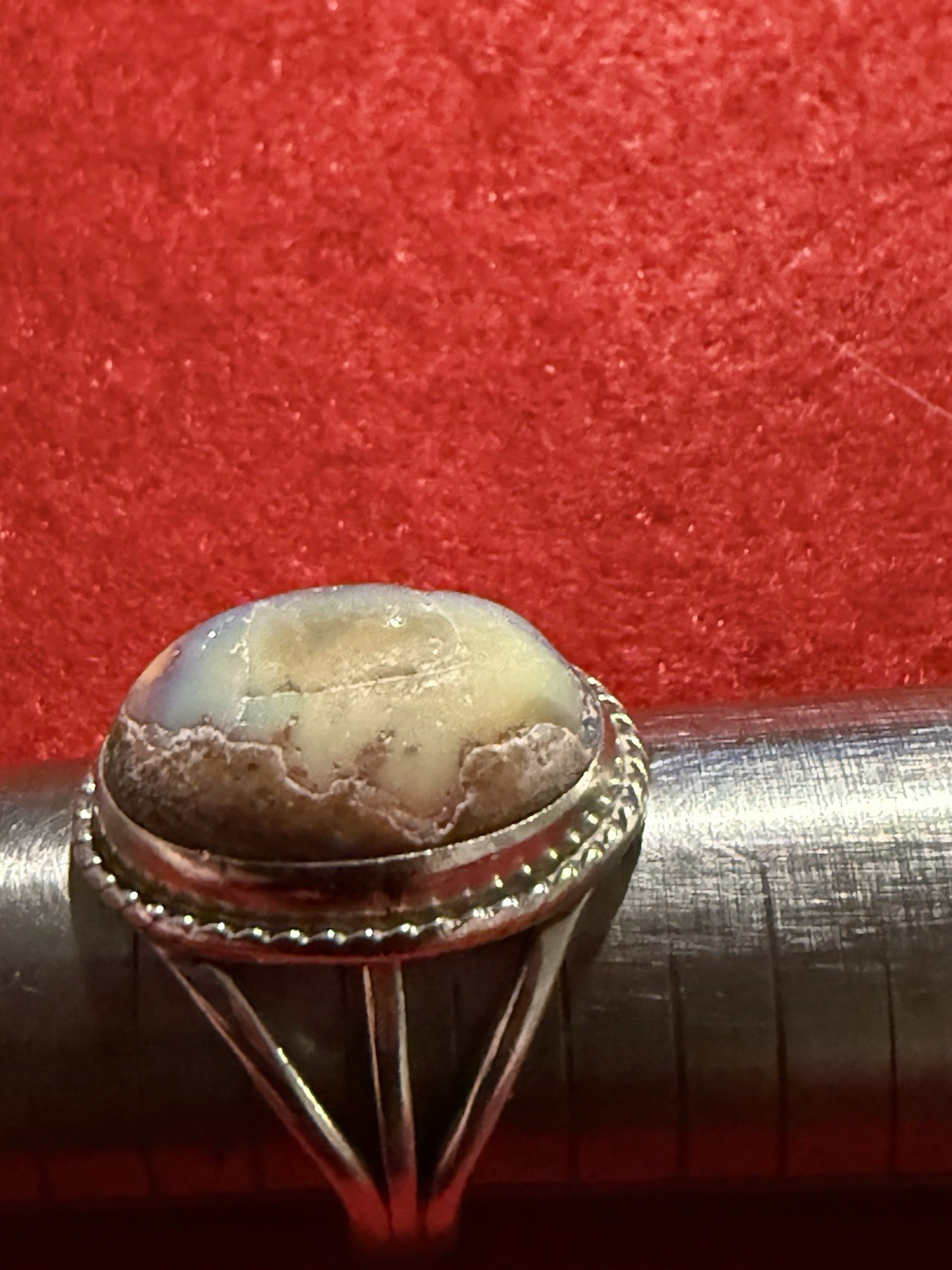 как выглядит Vintage Sterling Silver Ring with a Raw Natural Agate Gemstone Size 8.25 фото