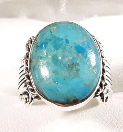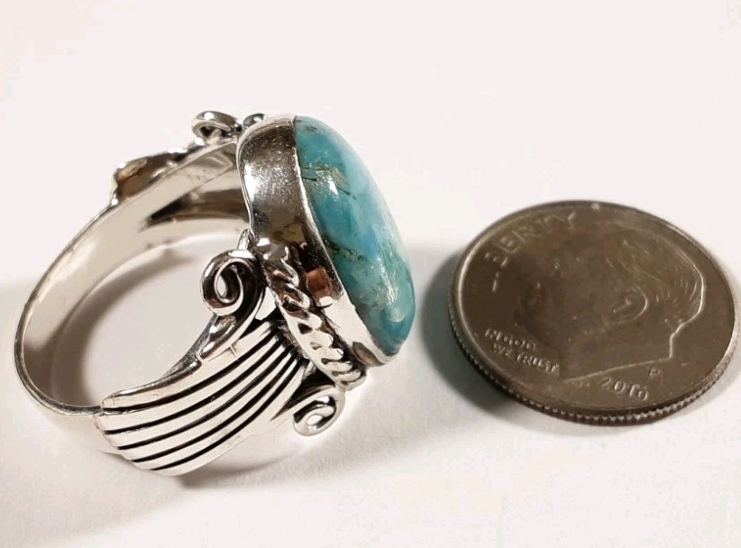 как выглядит 925 STERLING SILVER RIDGED SCROLLS DESIGN TURQUOISE SIZE 8 RING 6.7g фото