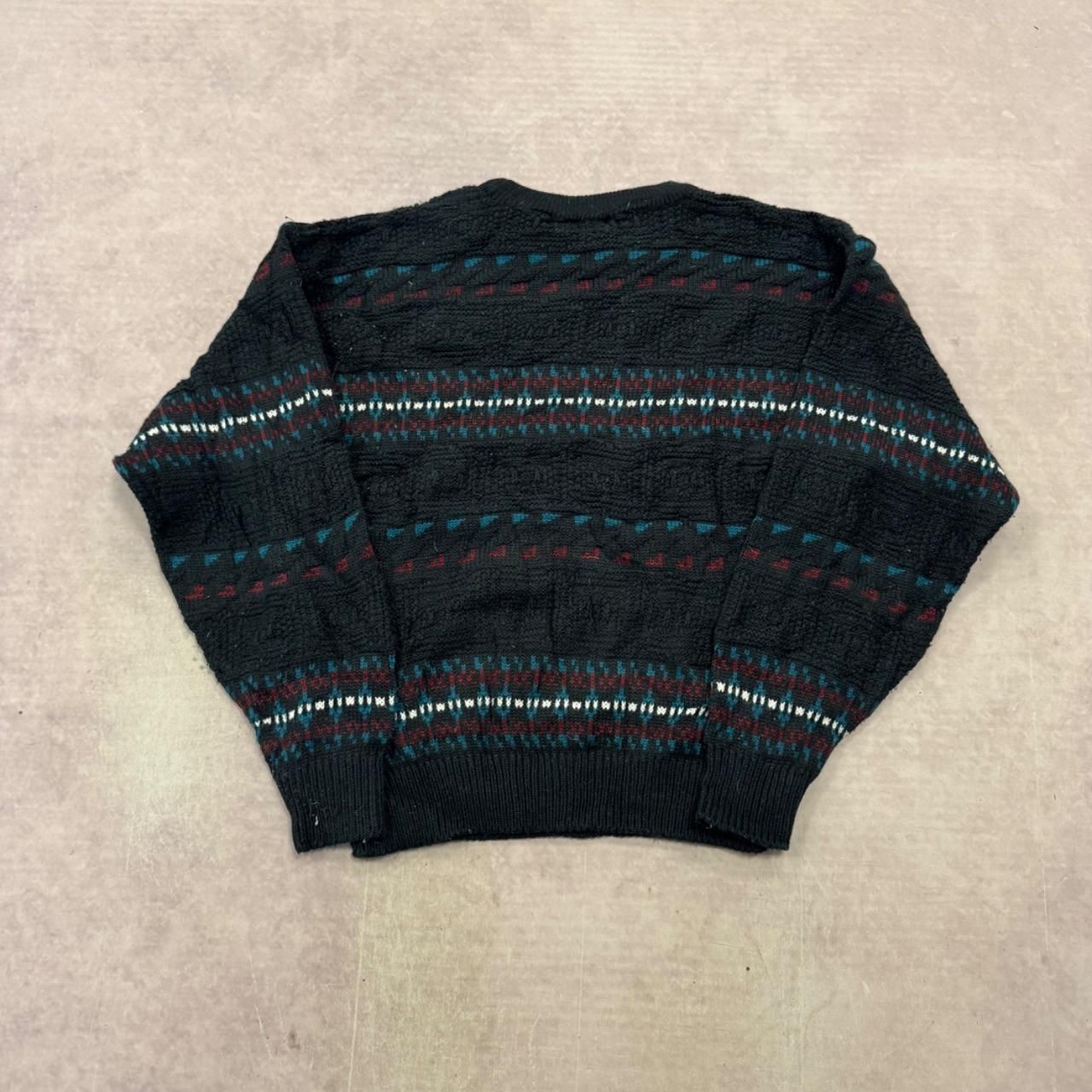 Vintage Knitted Jumper abstract patterned grandad knit sweater Men's L